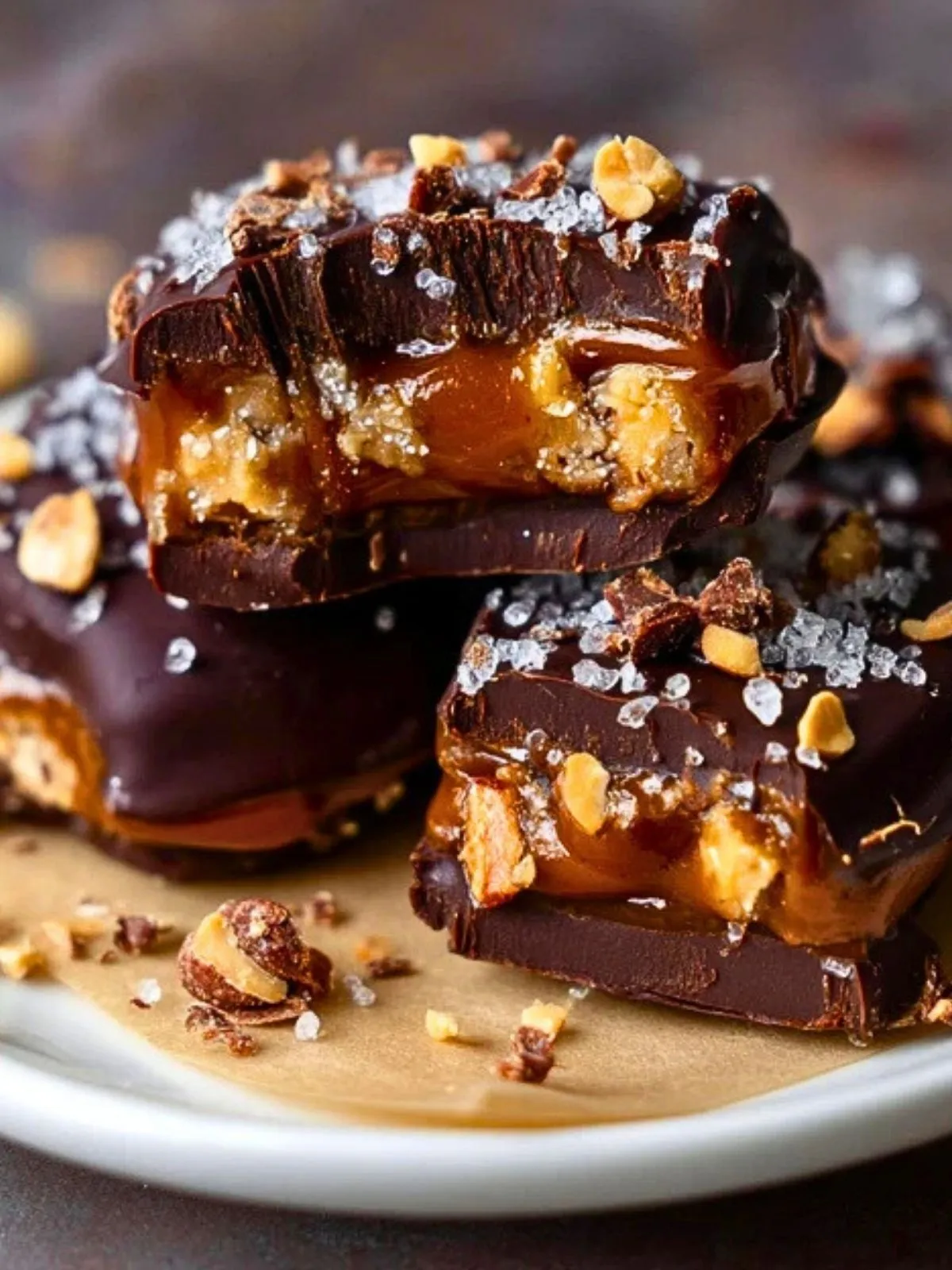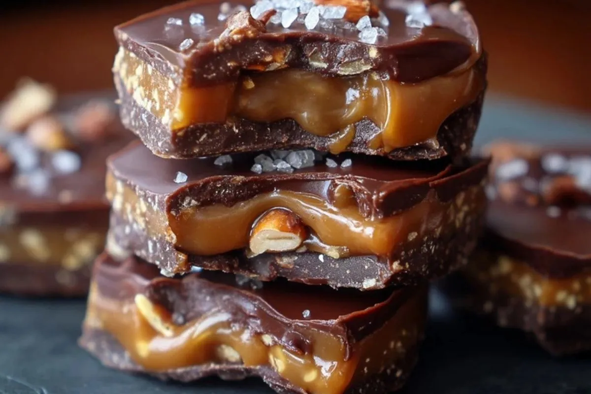 Des barres ultra-gourmandes qui associent un caramel de dattes fondant, des cacahuètes croquantes et une couche de chocolat noir intense. Faciles à réaliser, elles se dégustent en encas sain, pour un goûter ou après le sport.