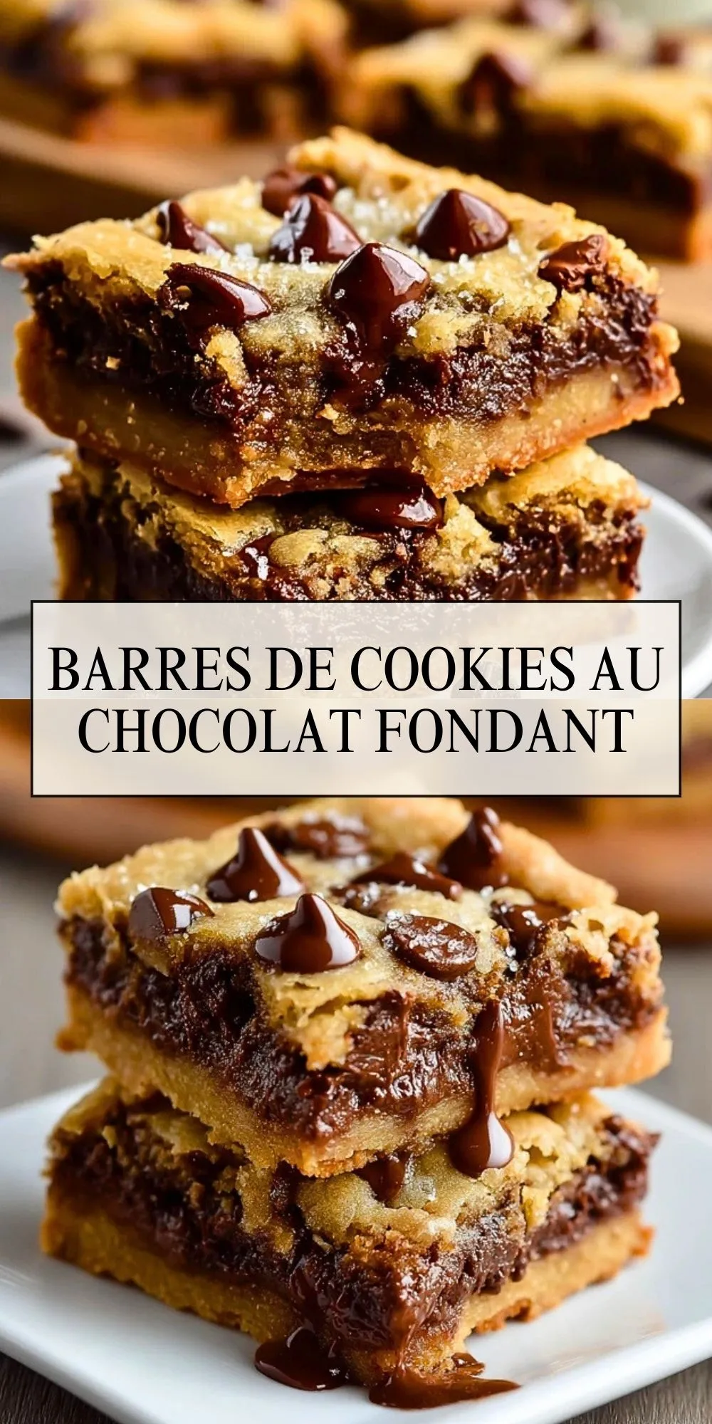 Les barres de cookies au chocolat fondant réunissent tout ce qu’on aime dans un grand classique de la pâtisserie maison : une croûte légèrement dorée, un cœur tendre presque coulant et de généreuses pépites de chocolat à chaque bouchée. Plus simples à préparer que des cookies individuels, elles offrent une texture épaisse et gourmande qui rappelle à la fois le cookie moelleux et le brownie fondant.