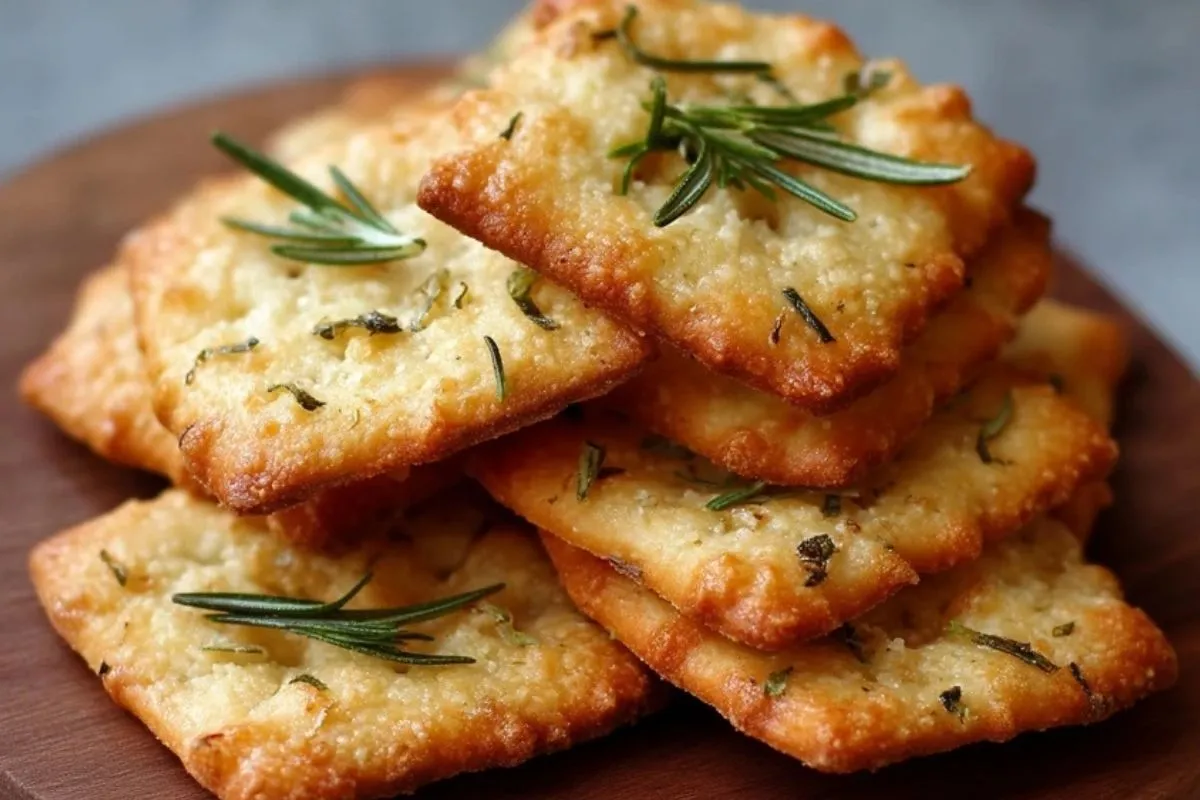 Ces biscuits au parmesan et romarin sont de fins crackers dorés au four, ultra croustillants, parfumés au fromage et aux herbes fraîches, parfaits pour l’apéritif ou pour accompagner une soupe ou une salade.