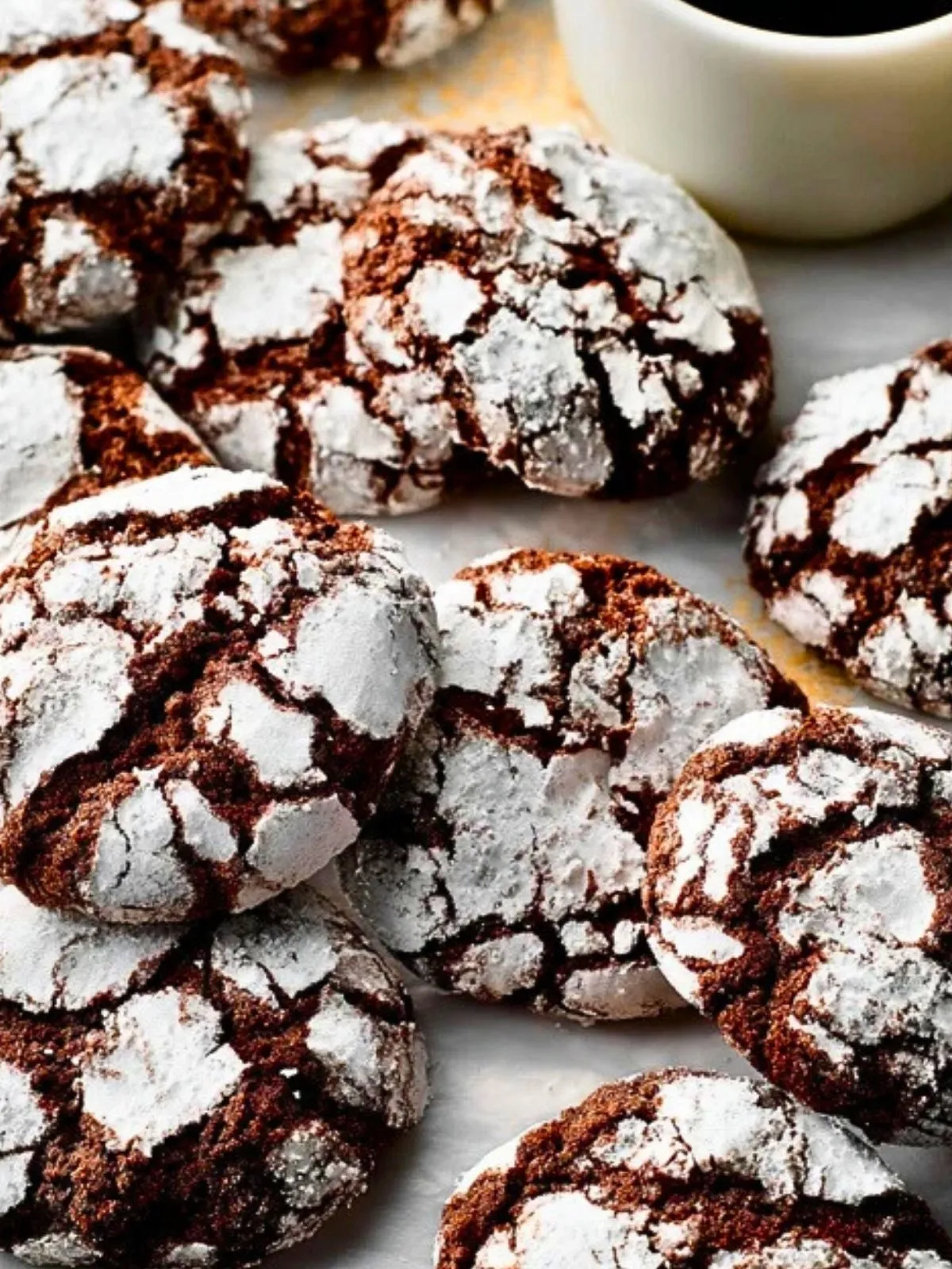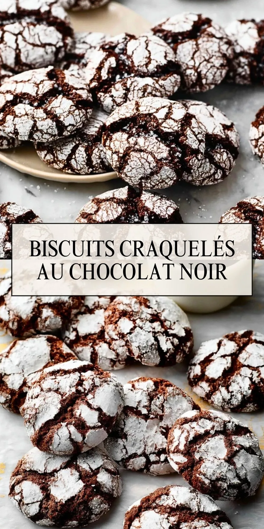 La magie de ces biscuits vient de leur texture : moelleux à l’intérieur, légèrement croustillants à l’extérieur, et intensément chocolatés. Leur apparence marbrée, obtenue grâce au contraste entre la pâte foncée et le sucre glace, attire le regard et promet une expérience gourmande unique à chaque bouchée.