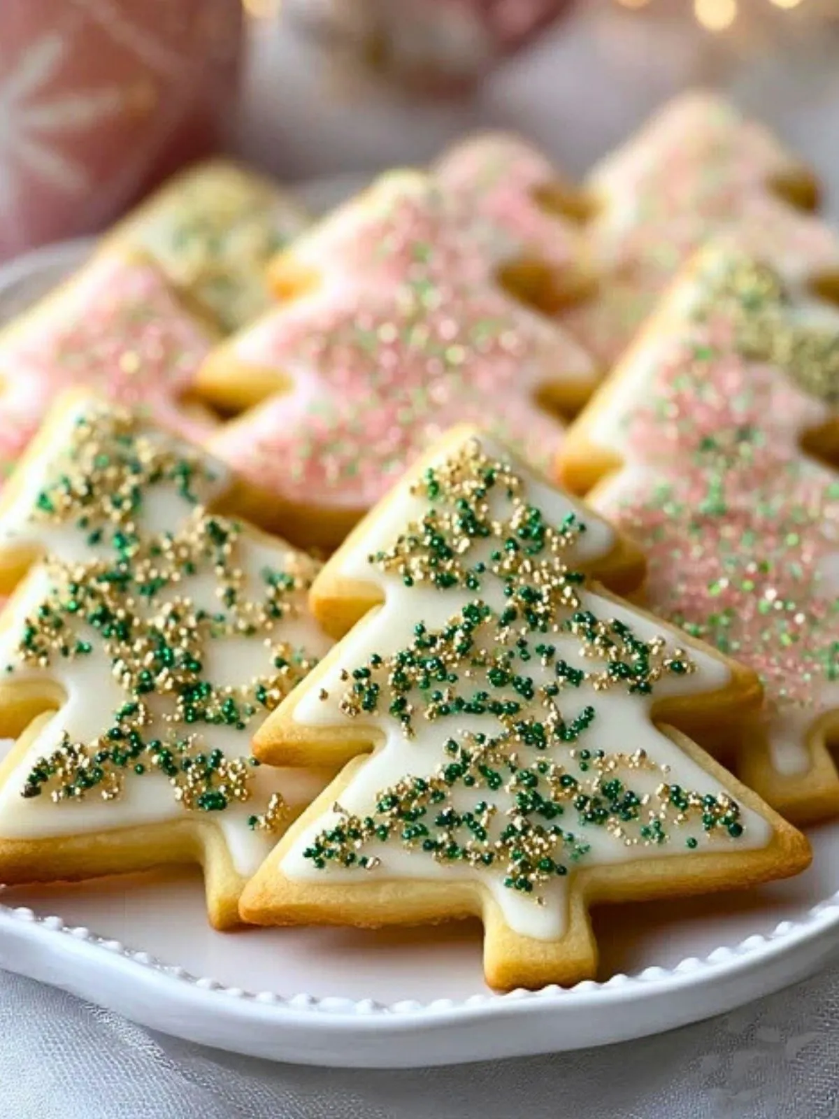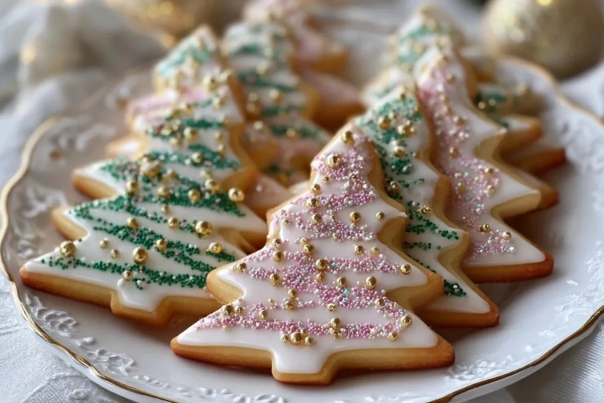 Ces biscuits sapin sucrés sont de jolis sablés de fête au beurre et à la vanille, décorés d’un glaçage simple et de perles sucrées. Parfaits pour Noël, ils sont faciles à préparer, agréables à offrir et délicieux avec une boisson chaude.