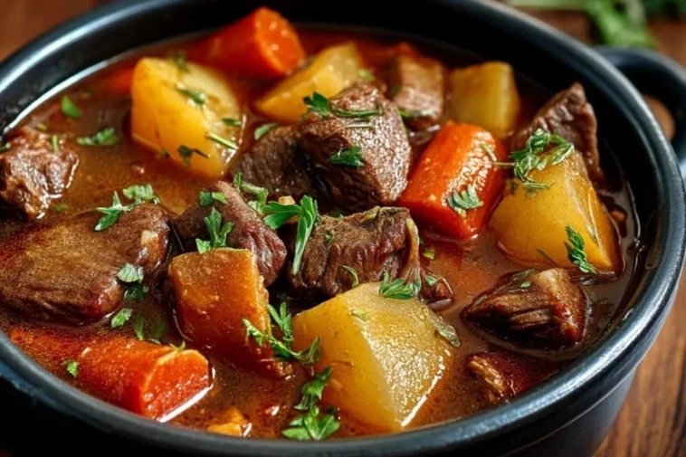 Ce ragoût riche et généreux est parfait pour les repas de famille, les dimanches d’hiver ou les grandes tablées entre amis. Préparé la veille, il n’en est que meilleur, car les saveurs ont le temps de se mêler et de gagner en profondeur.