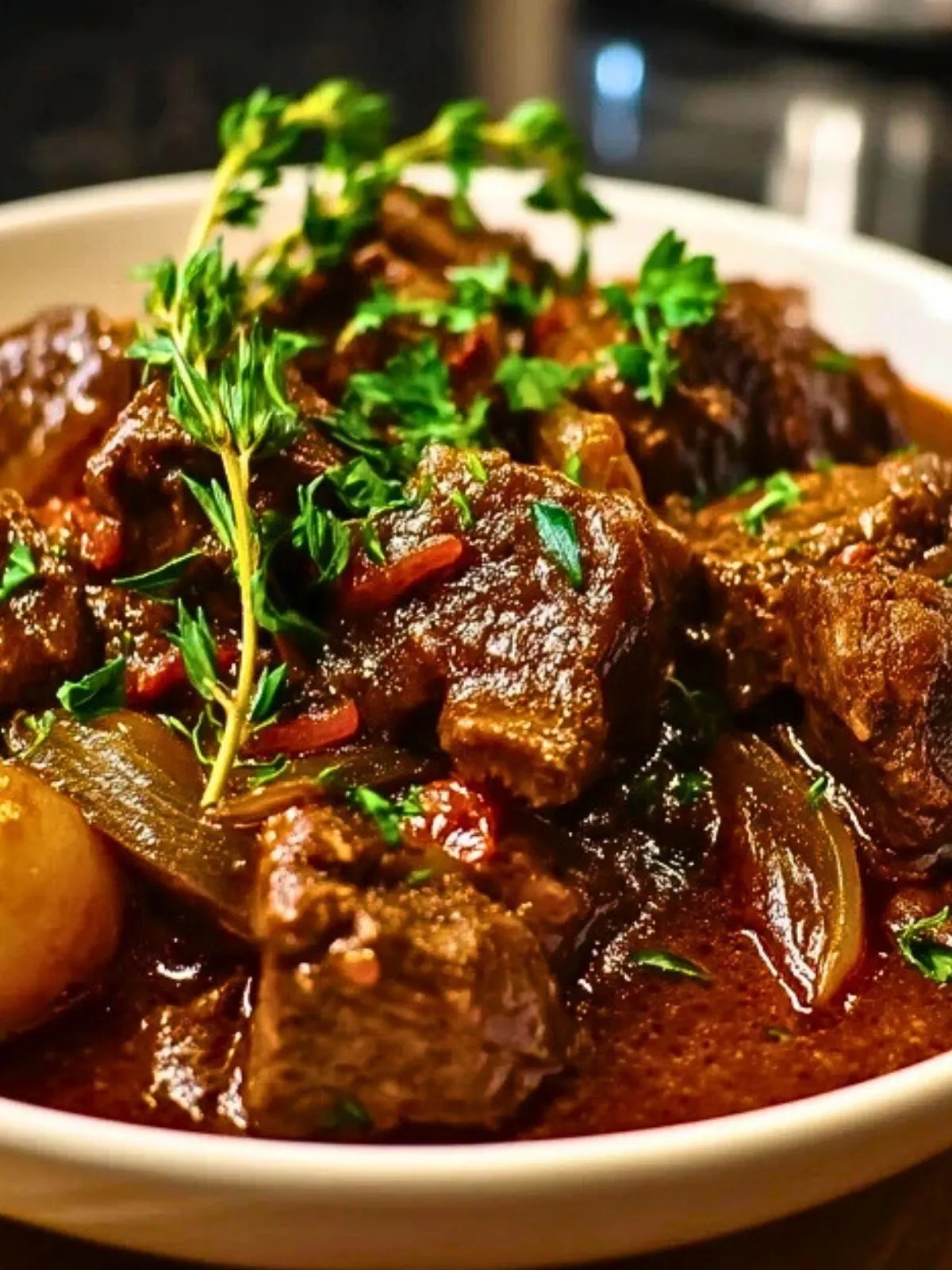 Bœuf à braiser (paleron ou macreuse) : base du plat, qui devient fondante après une longue cuisson.