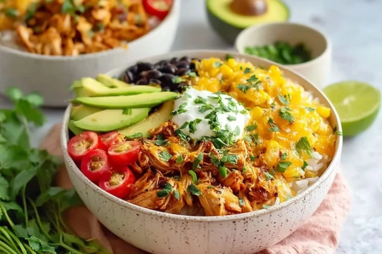 Ces bols de riz au poulet tacos faciles réunissent du poulet effiloché bien assaisonné, du riz moelleux et des garnitures fraîches pour un repas complet, coloré et généreux. Faciles à personnaliser, ils sont parfaits pour un déjeuner pratique ou un dîner savoureux en semaine.