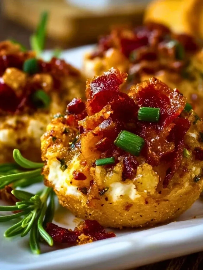 Ces bouchées de Thanksgiving réunissent tout ce que l’on aime lors de cette fête : une base fondante de pommes de terre dorées, un cœur crémeux de fromage frais, le croustillant du bacon et la fraîcheur de la ciboulette. Parfaites en apéritif ou lors d’un buffet festif, elles allient générosité, gourmandise et facilité de préparation.