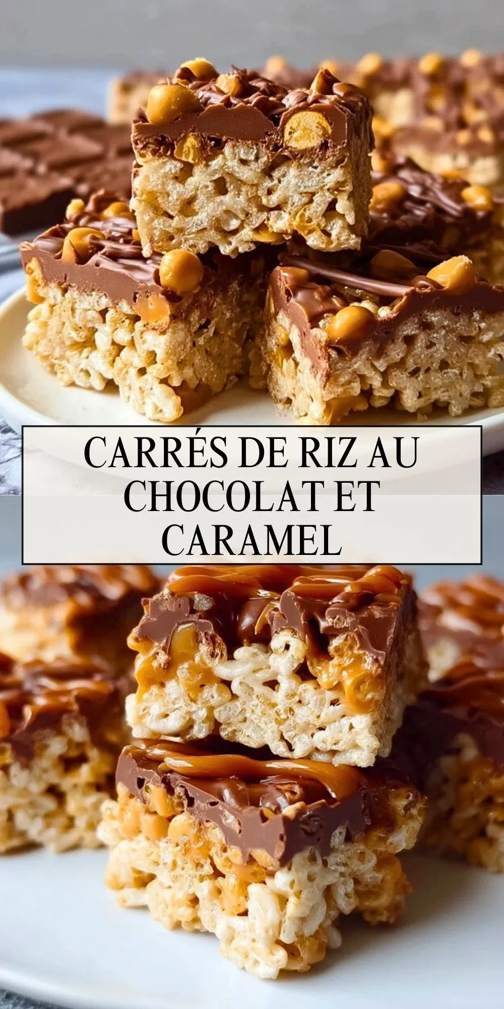 Ces carrés de riz au chocolat et caramel séduisent instantanément par leur apparence gourmande et leurs couches généreuses. Sous une fine croûte de chocolat croquant, on découvre un caramel onctueux qui se marie à merveille avec le croustillant des céréales de riz soufflé. C’est le type de douceur qui plait à tous les âges et qui transforme un simple goûter en moment inoubliable.