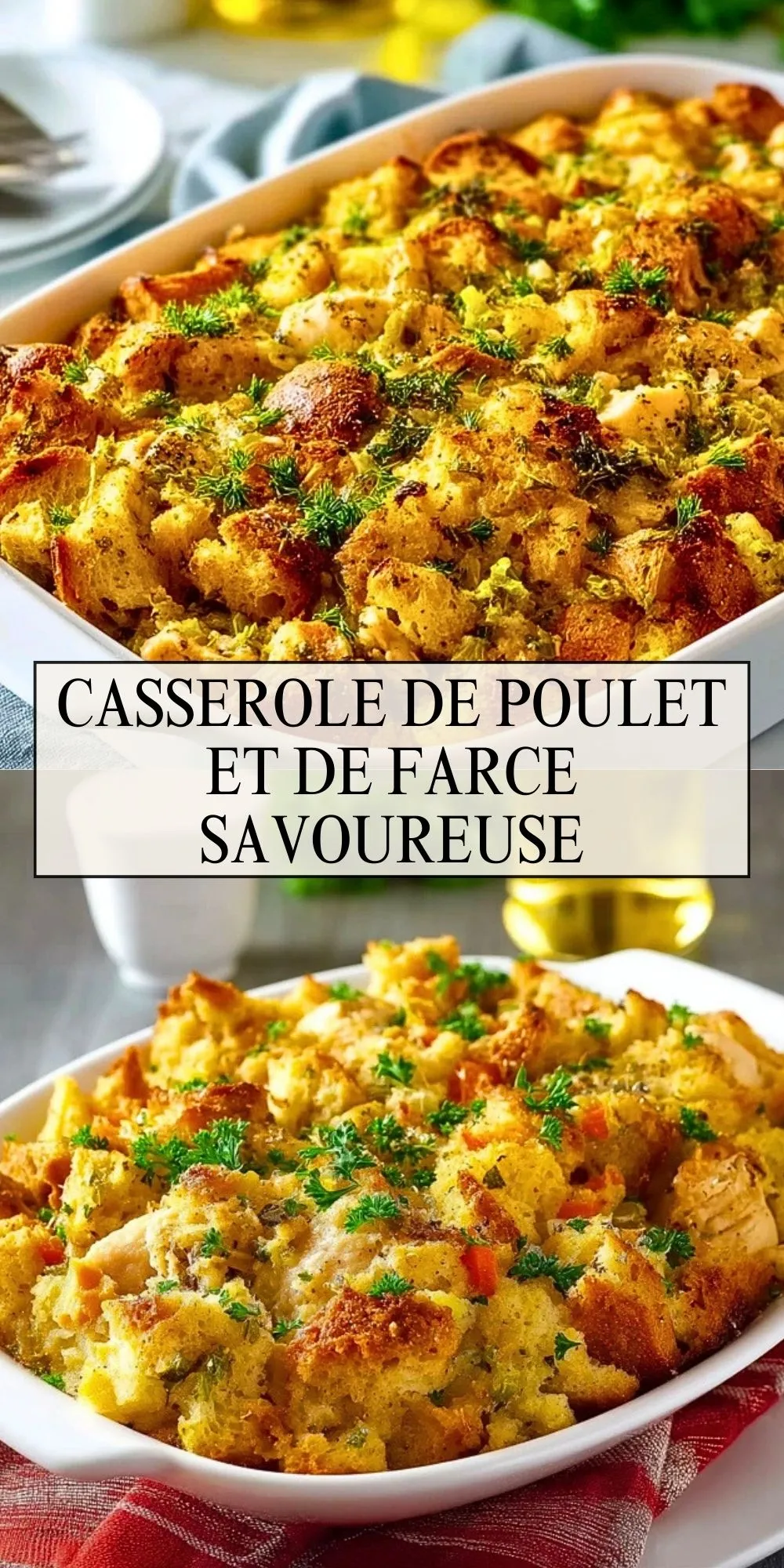 La casserole de poulet et de farce savoureuse est l’un de ces plats réconfortants qui rappellent les repas en famille du dimanche ou les dîners chaleureux d’automne. Un plat généreux où le moelleux du poulet se marie à la gourmandise d’une farce dorée, le tout rehaussé de fines herbes et d’une pointe de beurre fondu. Facile à préparer, il suffit de quelques ingrédients simples pour offrir une explosion de saveurs et une texture croustillante sur le dessus, fondante à l’intérieur.