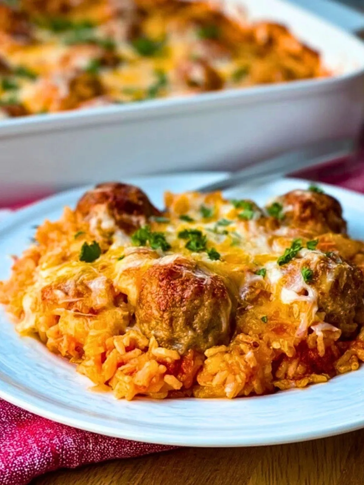 Ce plat fonctionne si bien parce qu’il rassemble plusieurs textures et saveurs dans un seul plat. Le riz devient moelleux et parfumé, les boulettes de viande apportent de la richesse et du caractère, la sauce tomate lie l’ensemble avec une note légèrement acidulée, et le fromage fondu recouvre le tout d’une couche dorée et irrésistible. C’est une recette pratique, nourrissante et très conviviale.