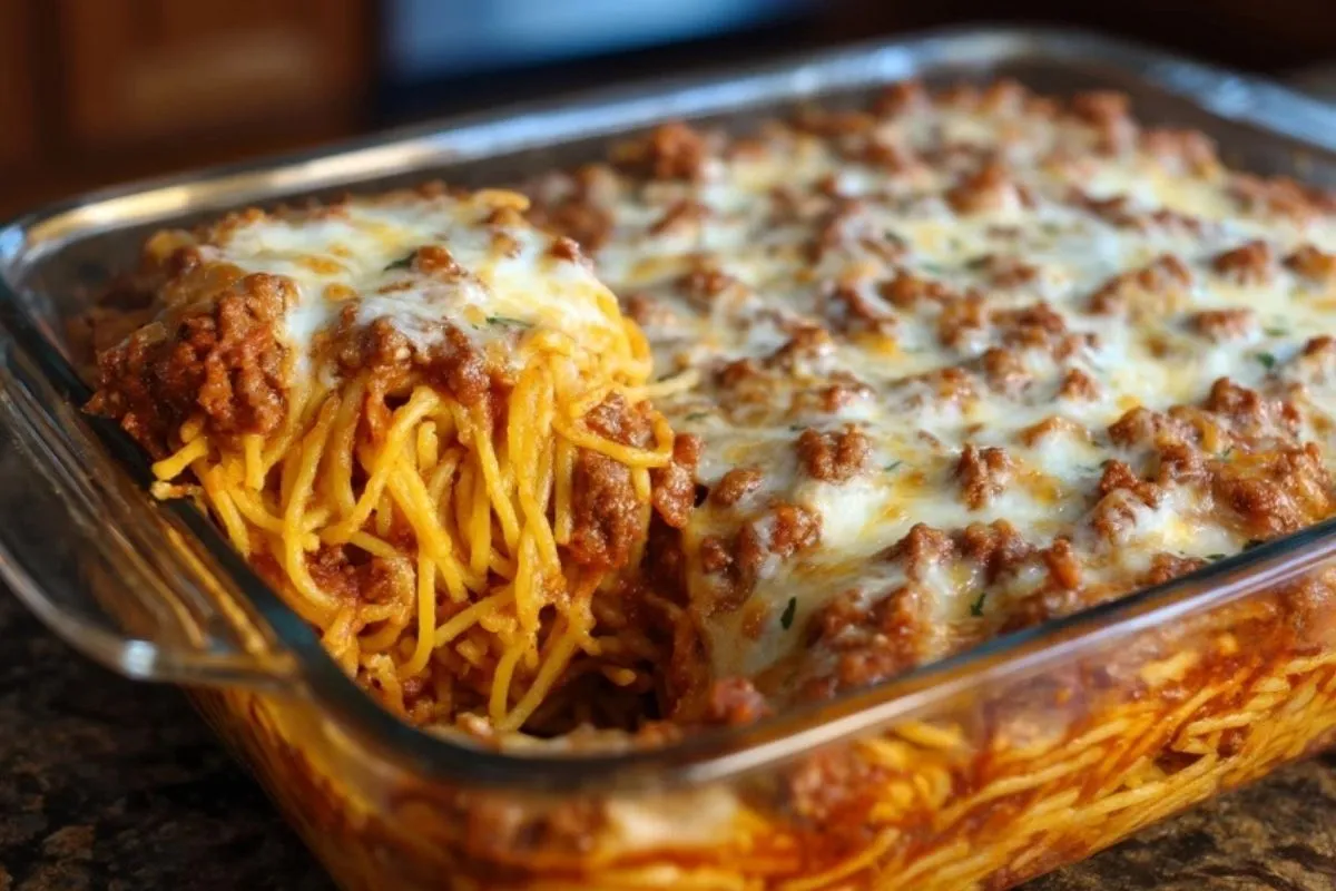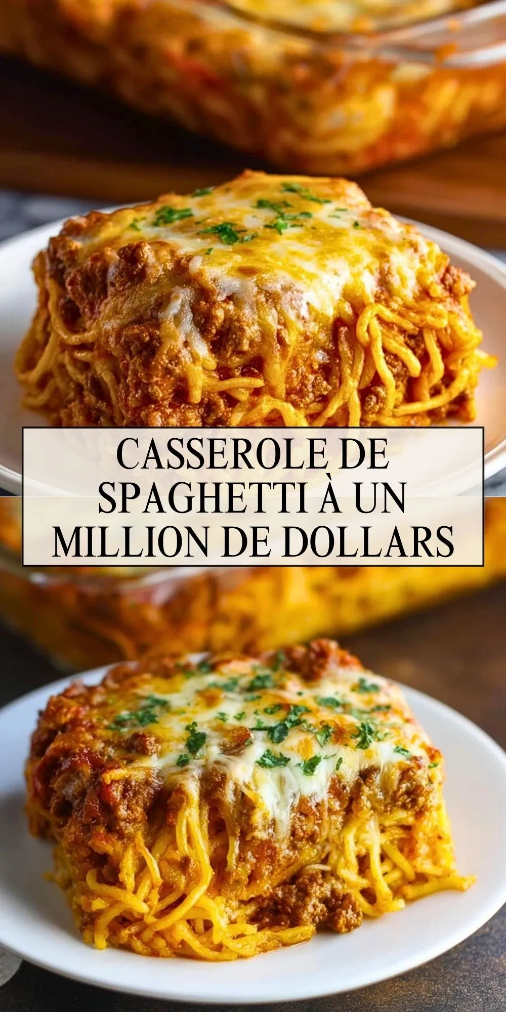 La casserole de spaghetti à un million de dollars est le genre de plat familial qui fait sensation à chaque fois. Ce gratin généreux combine des spaghetti al dente, une sauce tomate savoureuse à la viande, une couche de fromages fondants et une crème onctueuse qui rend chaque bouchée irrésistible. C’est le mariage parfait entre simplicité, réconfort et gourmandise.