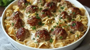 • Gratin de nouilles aux boulettes suédoises