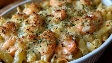 • Gratin de pâtes aux crevettes