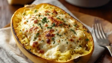 • Courge Spaghetti Rôtie avec Sauce Alfredo et Fromage