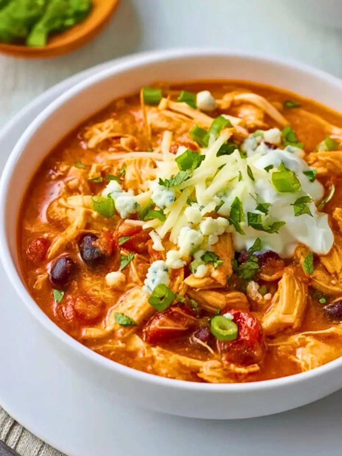 Un chili généreux, crémeux et légèrement relevé, préparé avec du poulet tendre, des haricots, des tomates et une sauce buffalo savoureuse, le tout mijoté lentement pour un maximum de goût. C’est un plat facile, convivial et parfait pour les repas réconfortants.