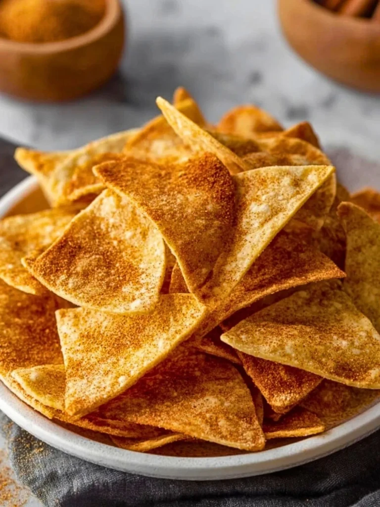 Chips de tortilla ultra-croustillantes, parfumées à la cannelle et au sucre, cuites au four pour une gourmandise légère et addictive. Parfaites à grignoter seules ou à tremper dans une compote ou un yaourt, elles sont idéales pour un goûter original ou une collation festive.