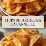 Croustillants, dorés, et subtilement parfumés à la cannelle, ces chips de tortilla sont la collation idéale pour ceux qui aiment marier le sucré et le croquant. Rapides à préparer, ils sont parfaits pour un goûter original, une pause café ou même pour surprendre vos invités à l’apéritif. On adore leur côté addictif qui rappelle les churros, mais en version légère et sans friture.