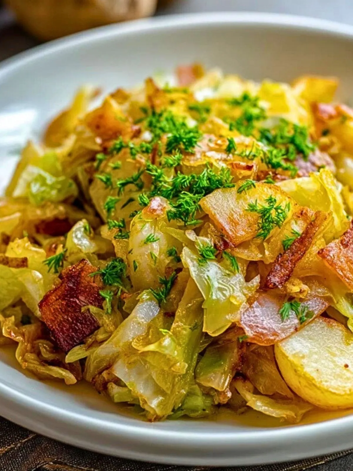 Ce plat doit sa saveur à une cuisson en plusieurs temps : les pommes de terre sont d’abord dorées pour développer des arômes de noisette, puis le chou frisé est ajouté avec un peu d’ail et d’oignon pour s’imprégner des sucs de cuisson. Les lardons ou le bacon, légèrement fumés, viennent ensuite parfumer l’ensemble. Le tout mijote doucement jusqu’à devenir fondant, tout en gardant quelques bords dorés irrésistibles.