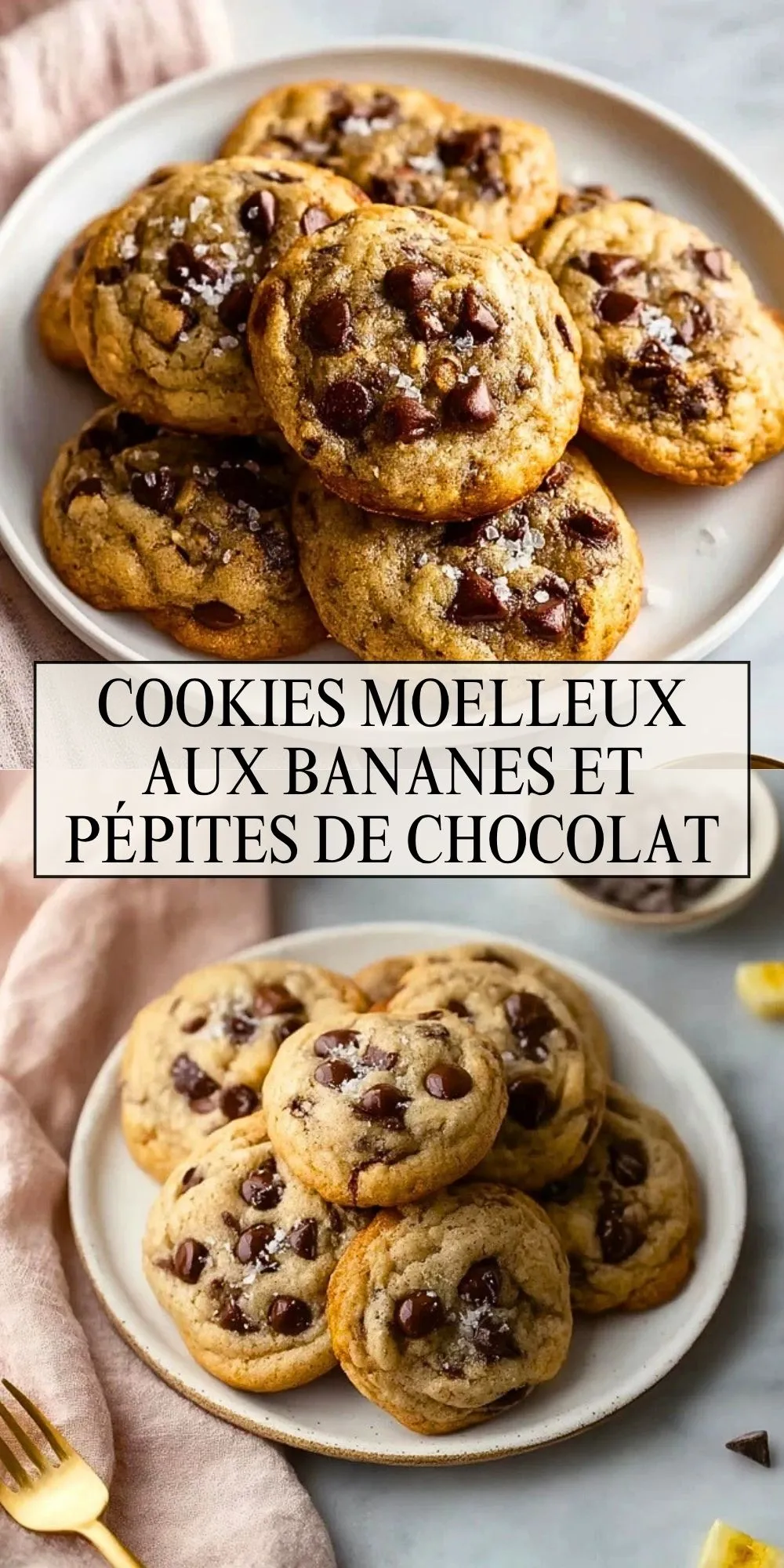 Keywords: cookies à la banane, cookies moelleux, pépites de chocolat, dessert à la banane, goûter maison