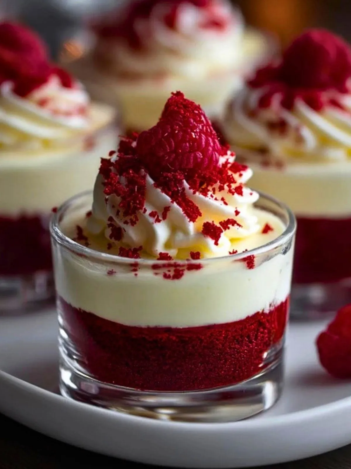 Parce qu’elles sont à la fois raffinées, simples à portionner et faciles à préparer à l’avance. Ce dessert permet de retrouver l’esprit du gâteau red velvet dans une version plus moderne et plus légère, avec un montage en couches qui impressionne immédiatement à table. C’est aussi une excellente idée quand on veut un dessert chic sans avoir à réaliser un grand gâteau à découper.
