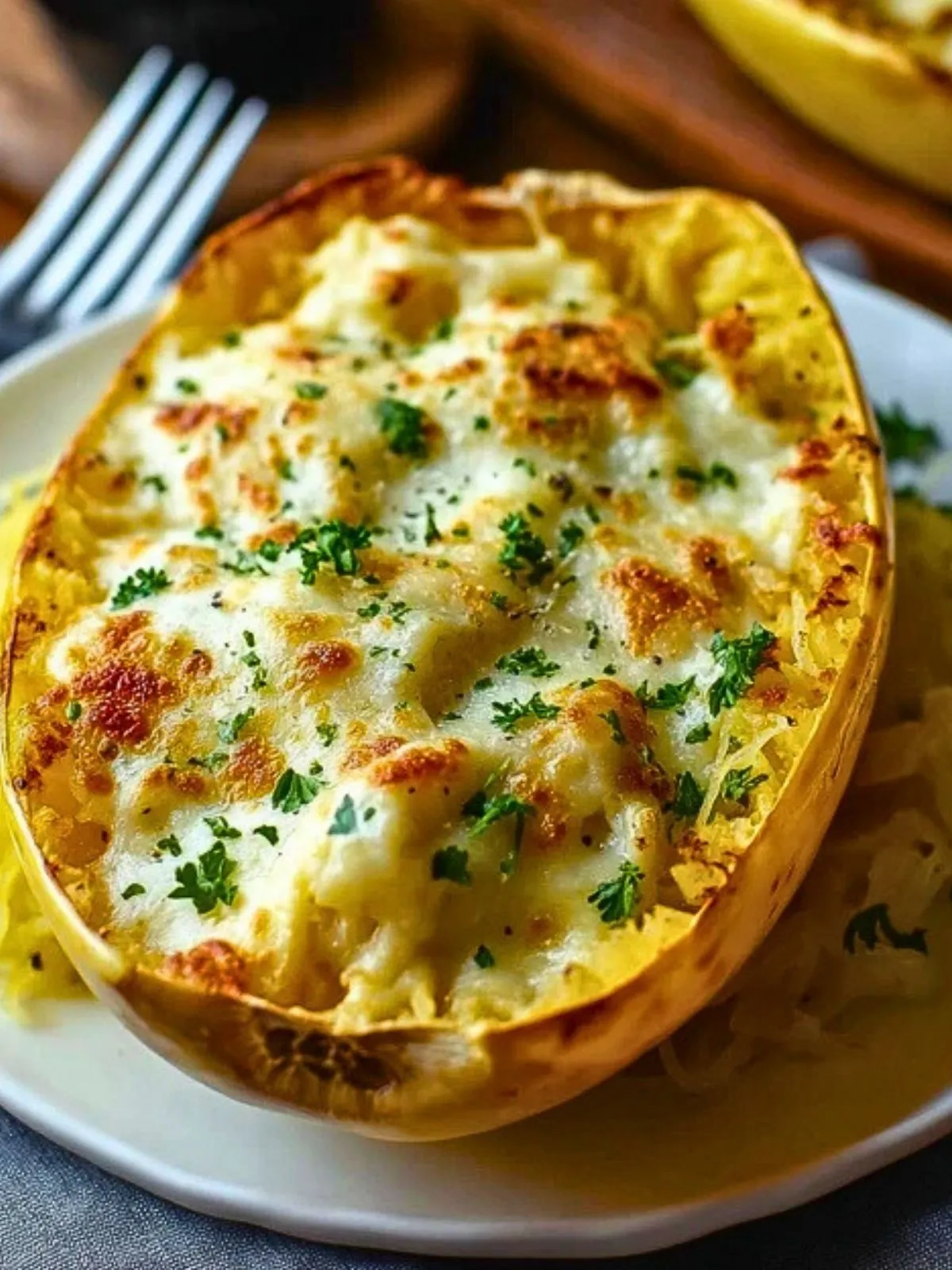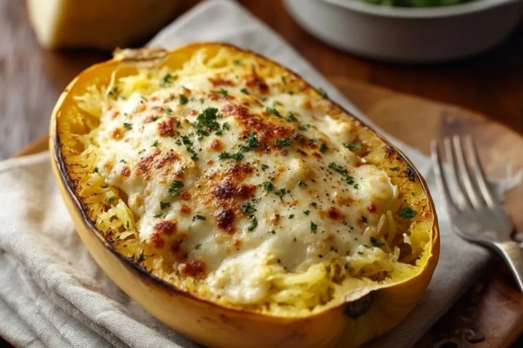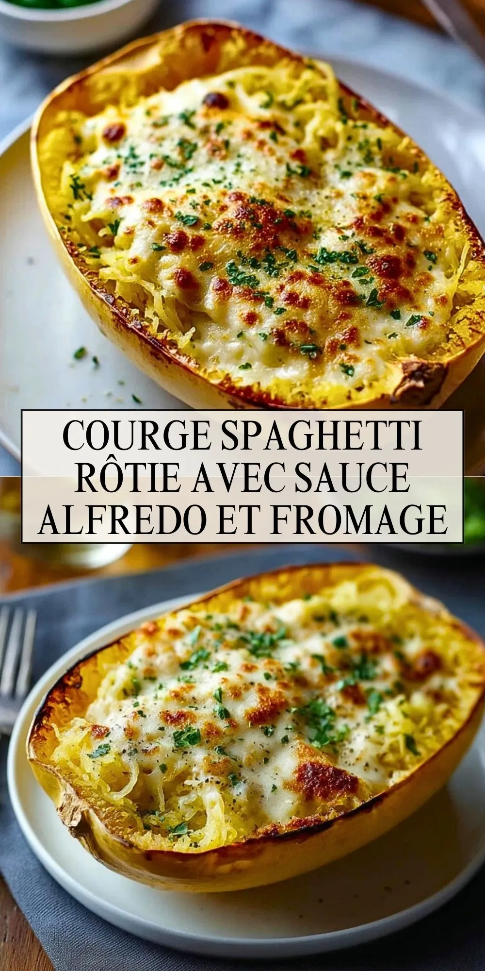 Courge Spaghetti Rôtie avec Sauce Alfredo et Fromage