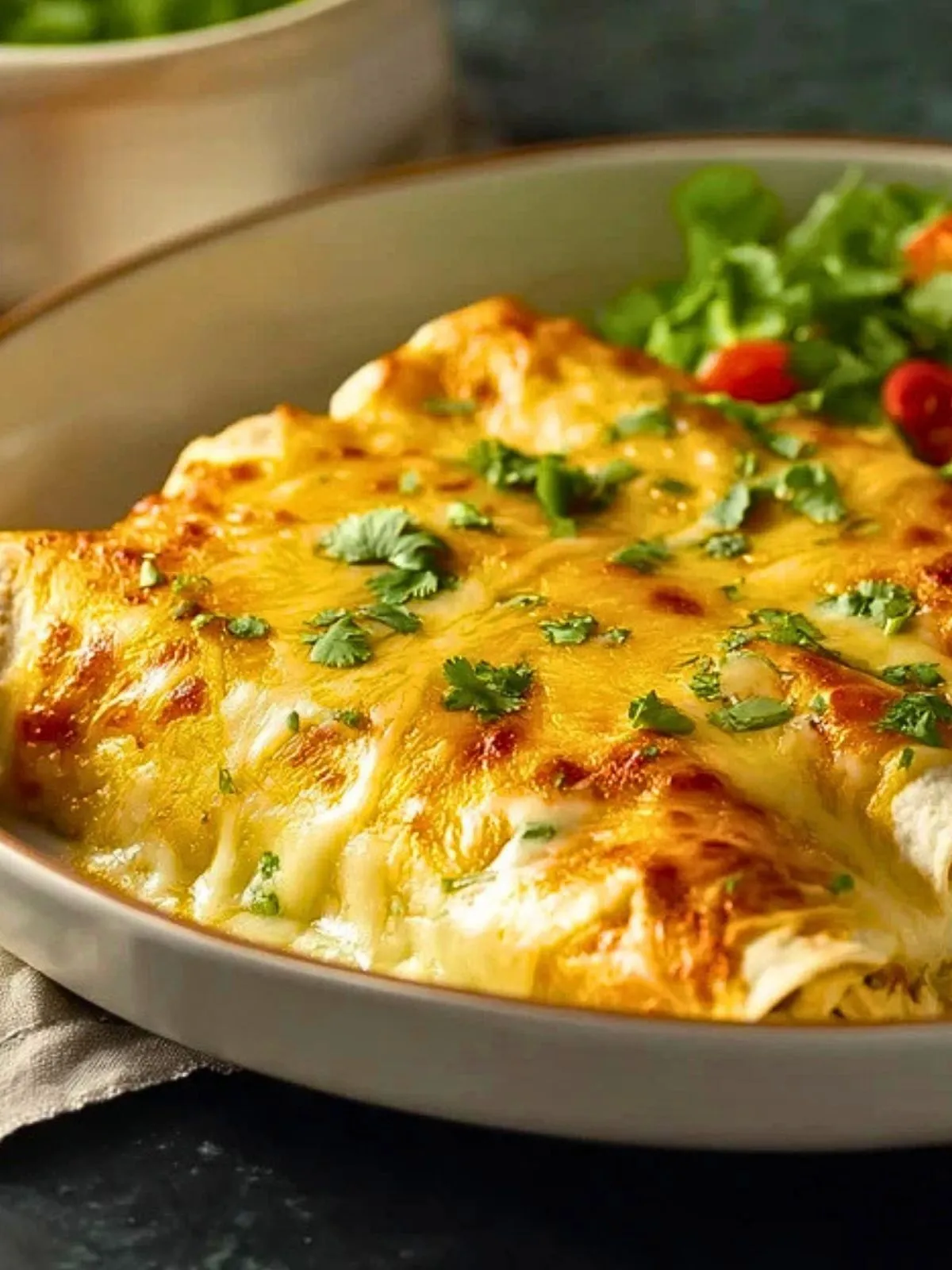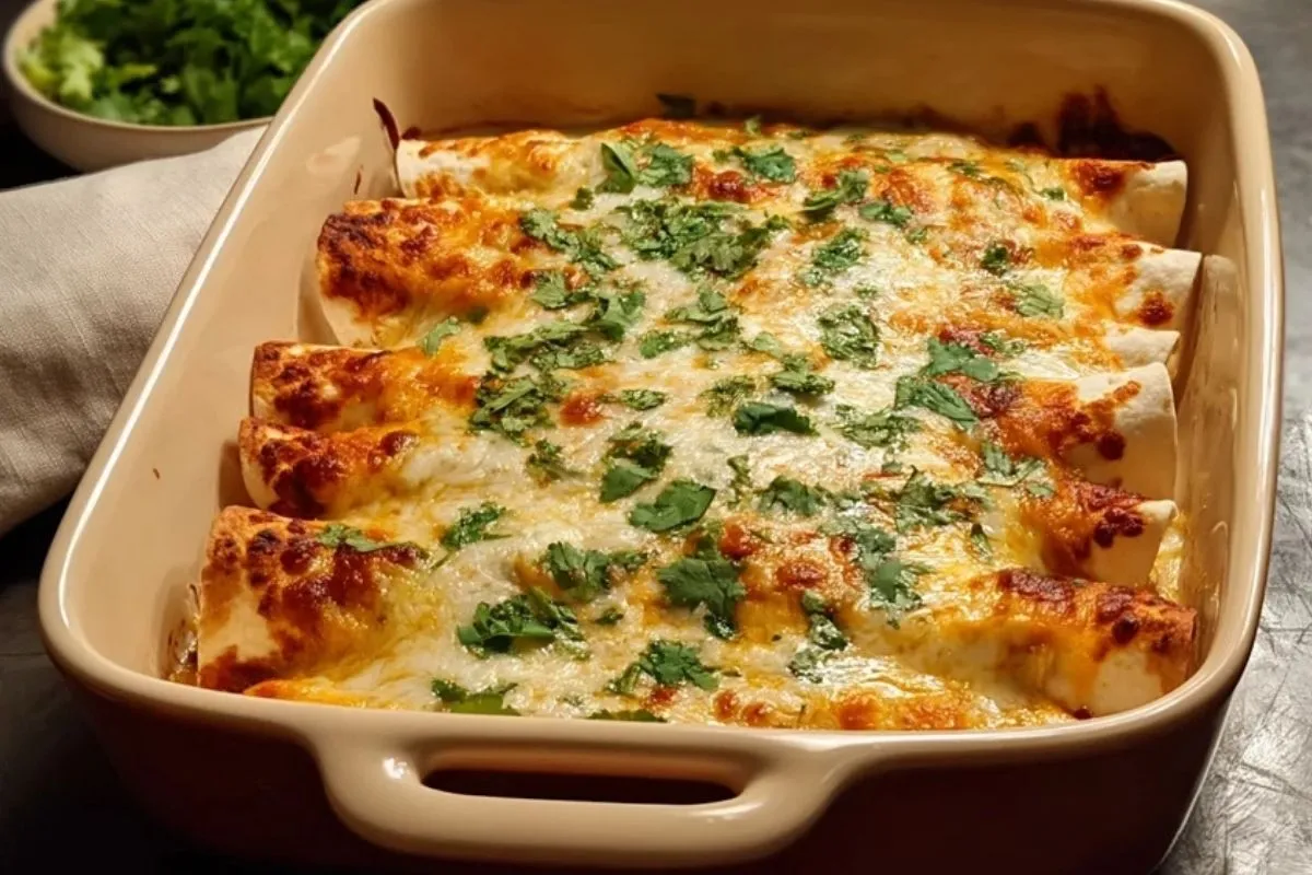 Ces enchiladas de poulet rôties savoureuses sont le genre de plat qui transforme un dîner ordinaire en vrai moment de gourmandise. Les tortillas garnies de poulet tendre, de sauce parfumée et de fromage fondant cuisent au four jusqu’à devenir dorées, moelleuses et irrésistiblement gratinées. C’est une recette chaleureuse, généreuse et parfaite pour réunir tout le monde autour d’un plat familial.