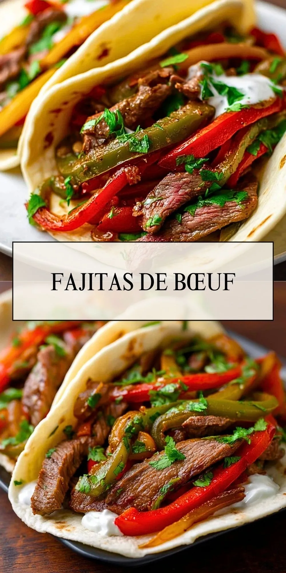 Keywords: fajitas de boeuf, tex-mex, tortillas, poivrons, dîner convivial
