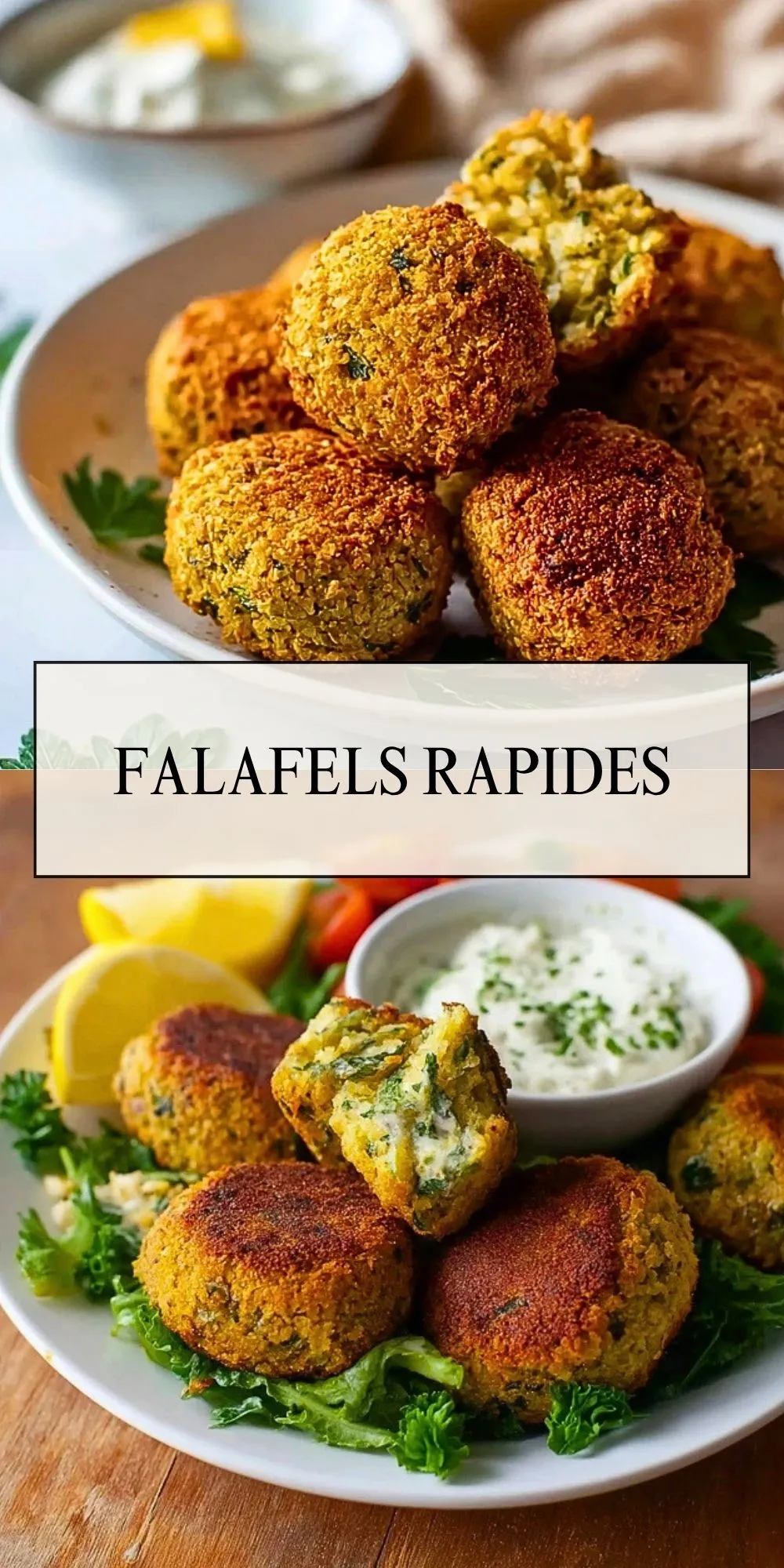 Servez les falafels rapides bien chauds avec des quartiers de citron, une sauce au yaourt, du houmous ou une salade croquante. Leur texture est particulièrement agréable juste après la cuisson.