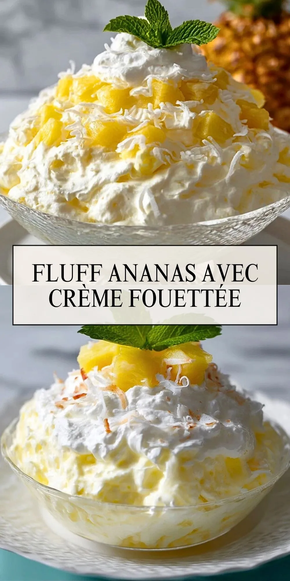 Keywords: fluff ananas, dessert ananas, dessert sans cuisson, crème fouettée, dessert facile