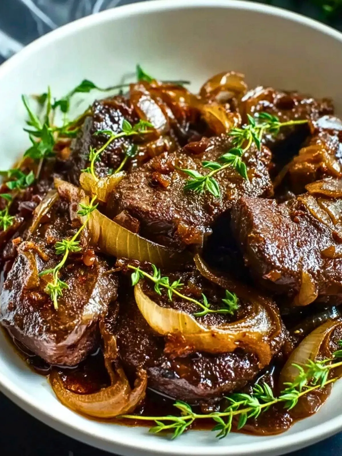 Redécouvrez le foie de bœuf grâce à cette recette classique revisitée : le Foie de Bœuf Caramélisé aux Oignons. Onctueux, tendre, délicatement caramélisé, il est relevé par la douceur confite des oignons et le parfum du romarin. Ce plat familial réconfortant plaît autant aux amateurs de cuisine traditionnelle qu’aux gourmets curieux. Servi avec une purée maison ou quelques pommes de terre sautées, il transforme un simple dîner en un vrai moment gourmand et authentique.