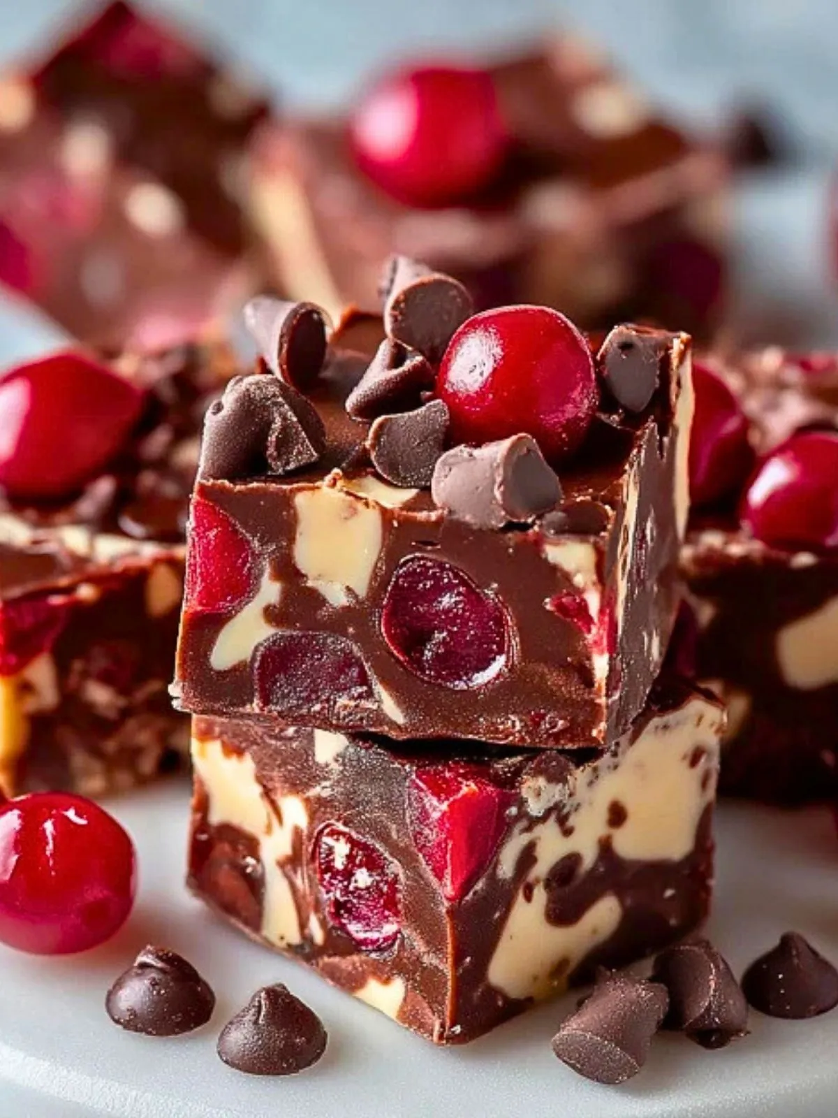 Ce fudge aux cerises irrésistible marie la richesse d’un chocolat onctueux à l’éclat acidulé et fruité des cerises. Chaque petit carré est dense, fondant et parsemé de morceaux rouges brillants qui apportent une touche festive à chaque bouchée.