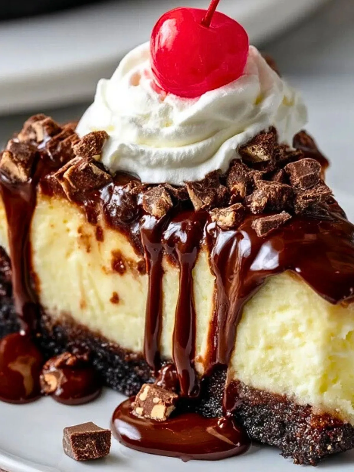 Parce qu’il offre le meilleur des deux mondes entre cheesecake et brownie, avec une texture crémeuse sur une base intensément cacaotée. La sauce au chocolat vient encore renforcer son côté dessert de pâtisserie, tout en restant réalisable à la maison avec des étapes simples et des ingrédients faciles à trouver.