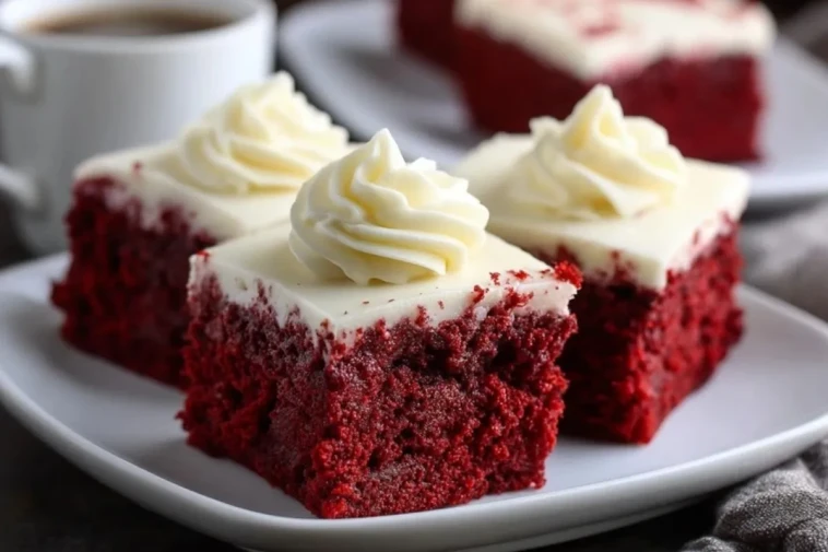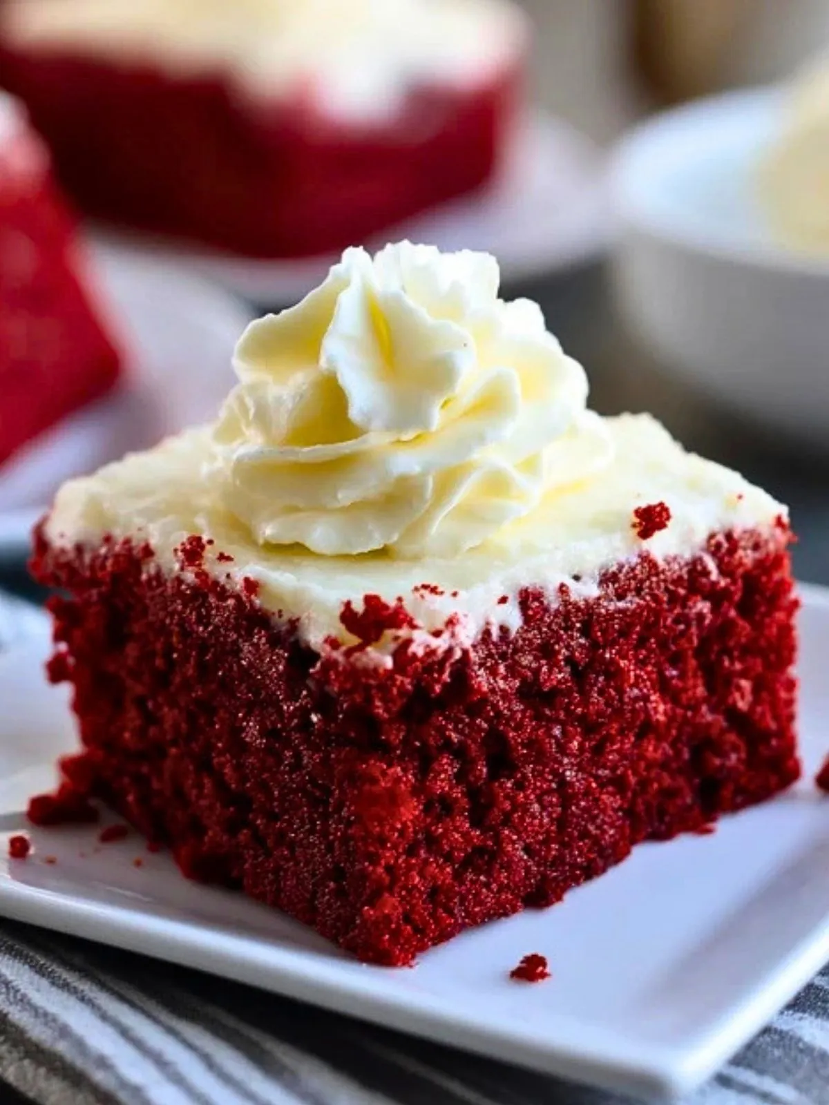 Ce gâteau rouge velours snack est moelleux, délicatement cacaoté et recouvert d’un glaçage onctueux au fromage frais. Facile à préparer dans un seul moule, il se découpe en carrés généreux parfaits pour le goûter, un buffet de desserts ou une occasion spéciale.