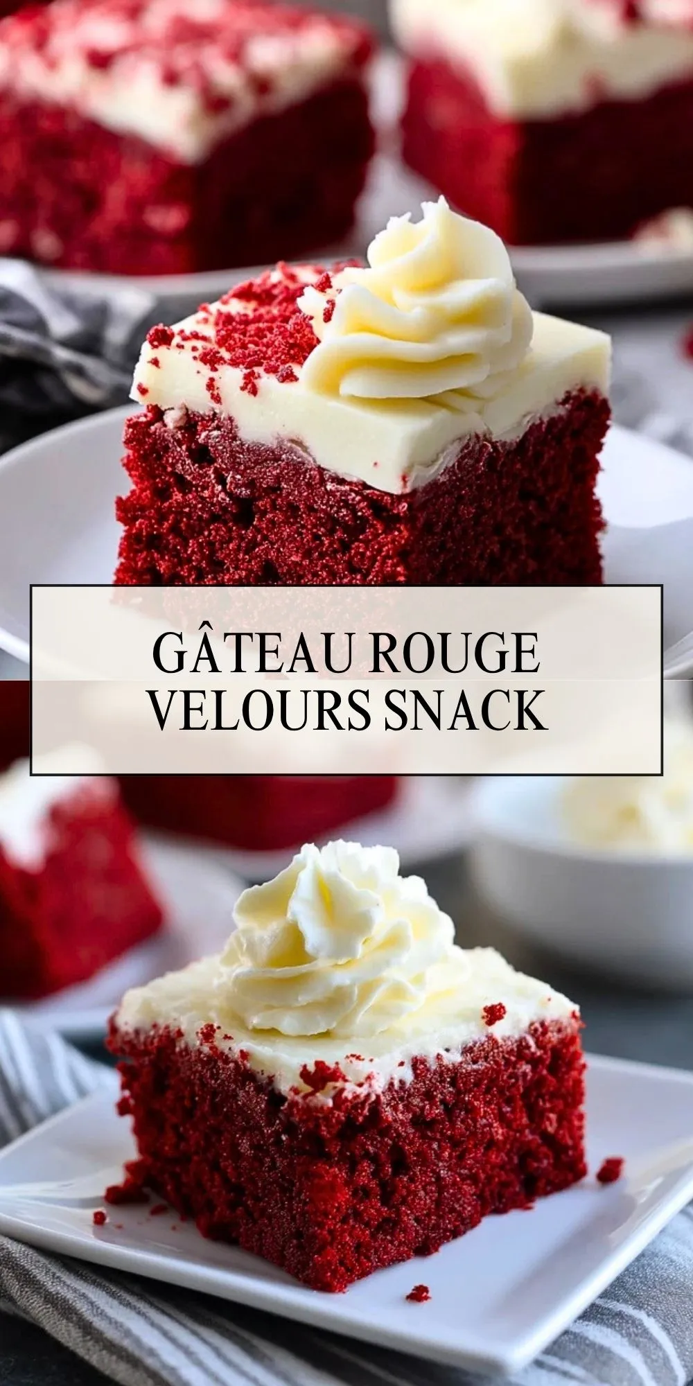Keywords: gâteau rouge velours snack, red velvet snack cake, gâteau au fromage frais, dessert à partager
