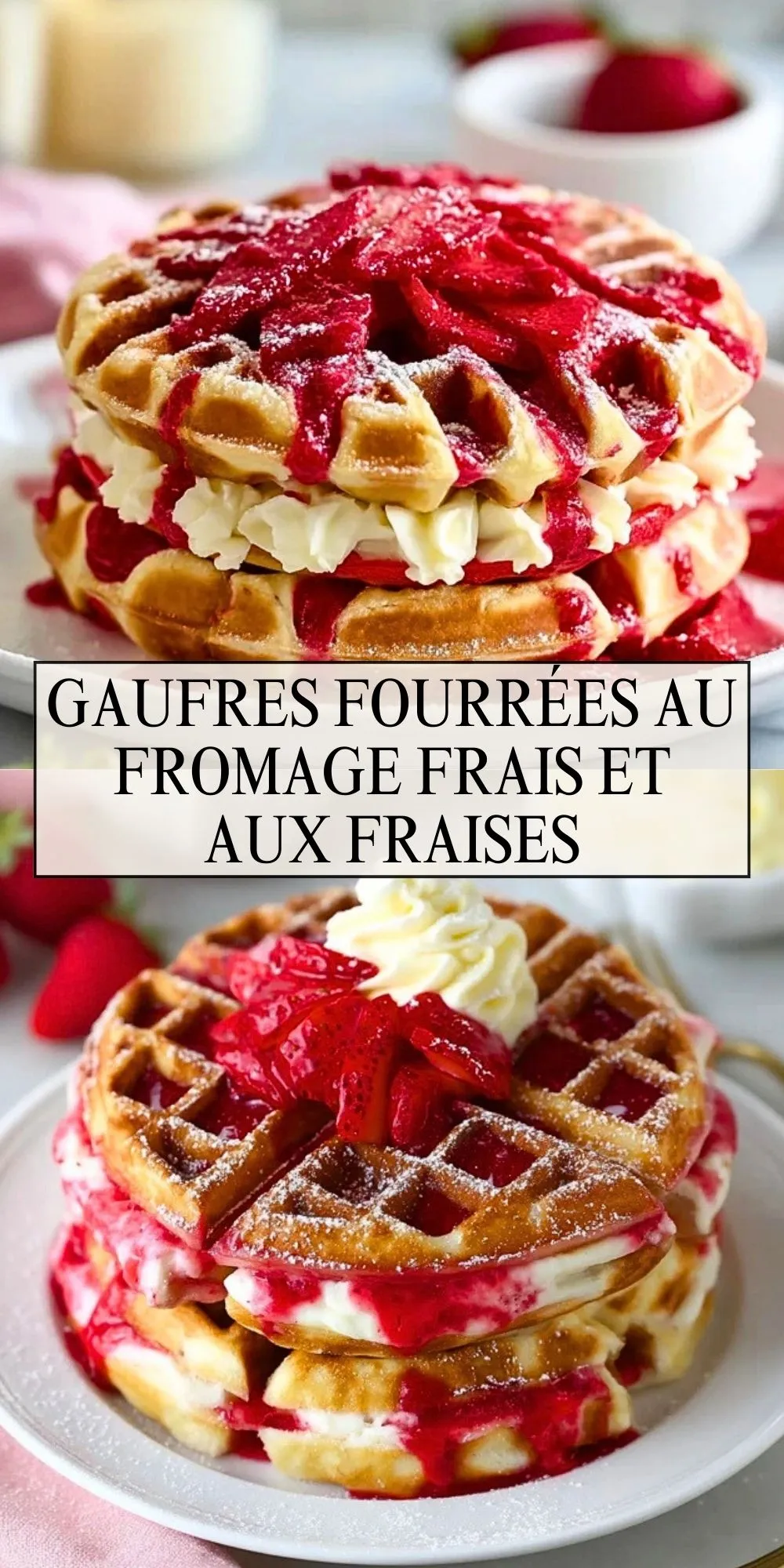 Épinglez ces gaufres fourrées au fromage frais et aux fraises sur Pinterest pour les retrouver facilement. Partagez vos photos, vos variantes de fruits ou vos astuces (ajout de zestes, mélange de fruits, version chocolatée…) en commentaire pour inspirer la communauté gourmande !
