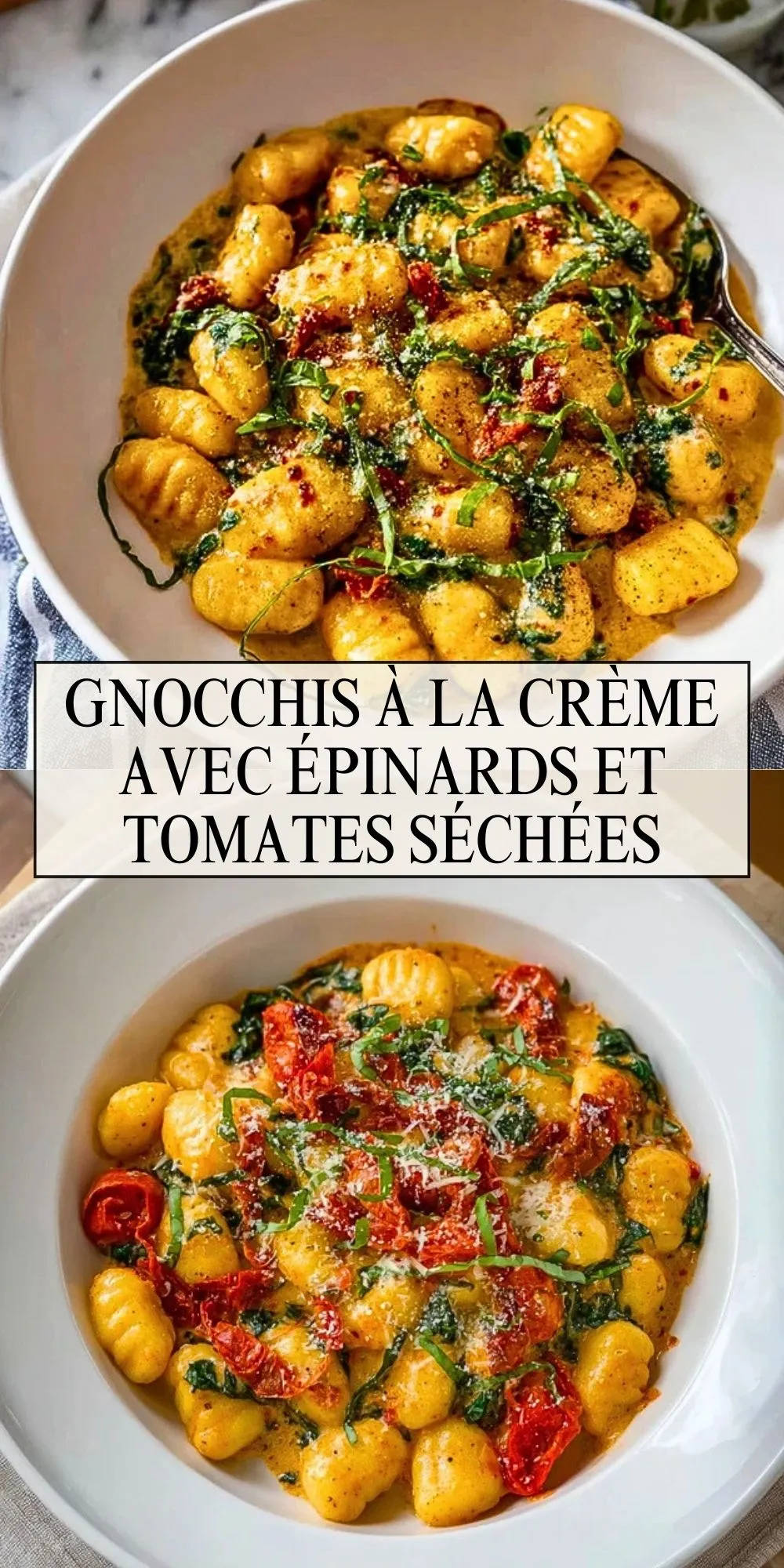 C’est le contraste entre la douceur des gnocchis, la richesse de la sauce à la crème, la fraîcheur des épinards et le goût intense des tomates séchées. Ce plat allie simplicité, rapidité et saveurs marquées : il fait toujours sensation à table, même les soirs de semaine !