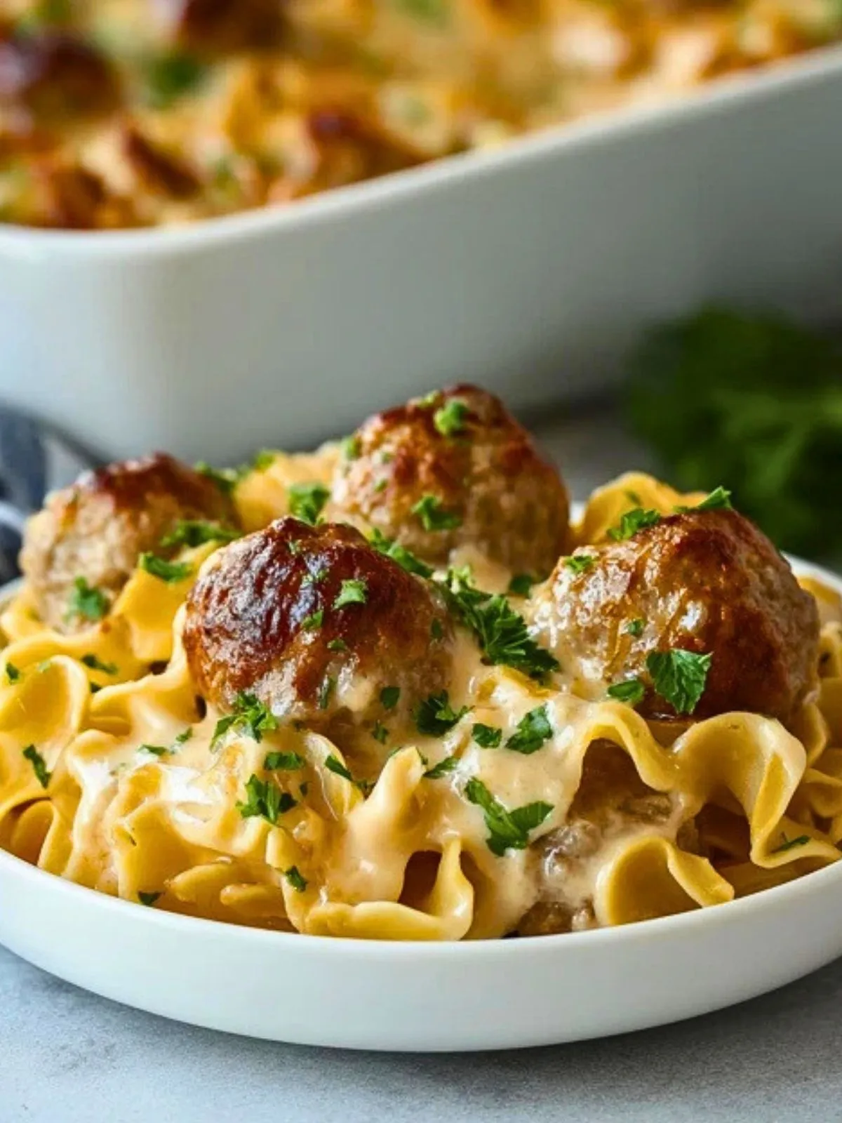 Keywords: gratin de pâtes,boulettes suédoises,gratin familial,plats de semaine,nouilles aux œufs