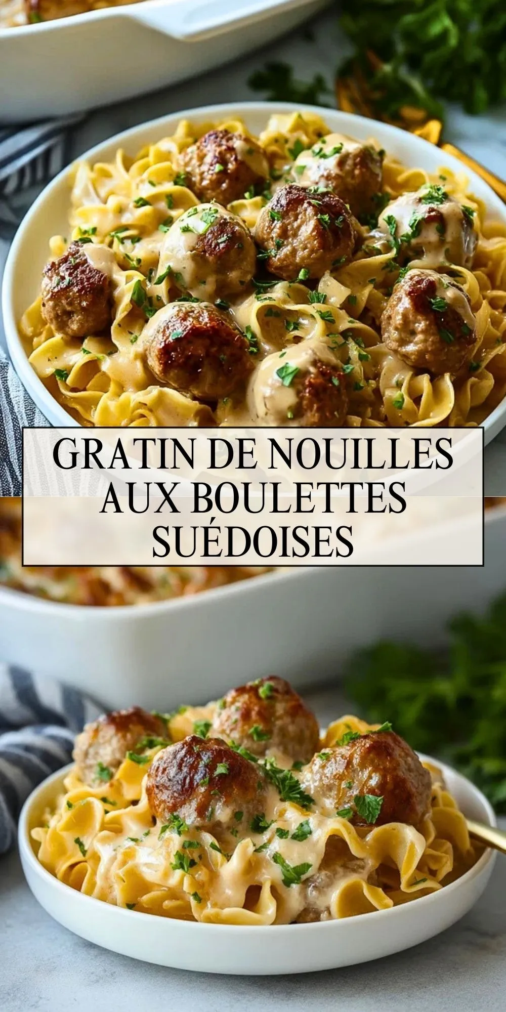 Épinglez cette recette de gratin de nouilles aux boulettes suédoises sur votre tableau Pinterest “plats familiaux” pour la retrouver facilement lors de vos soirs de semaine.