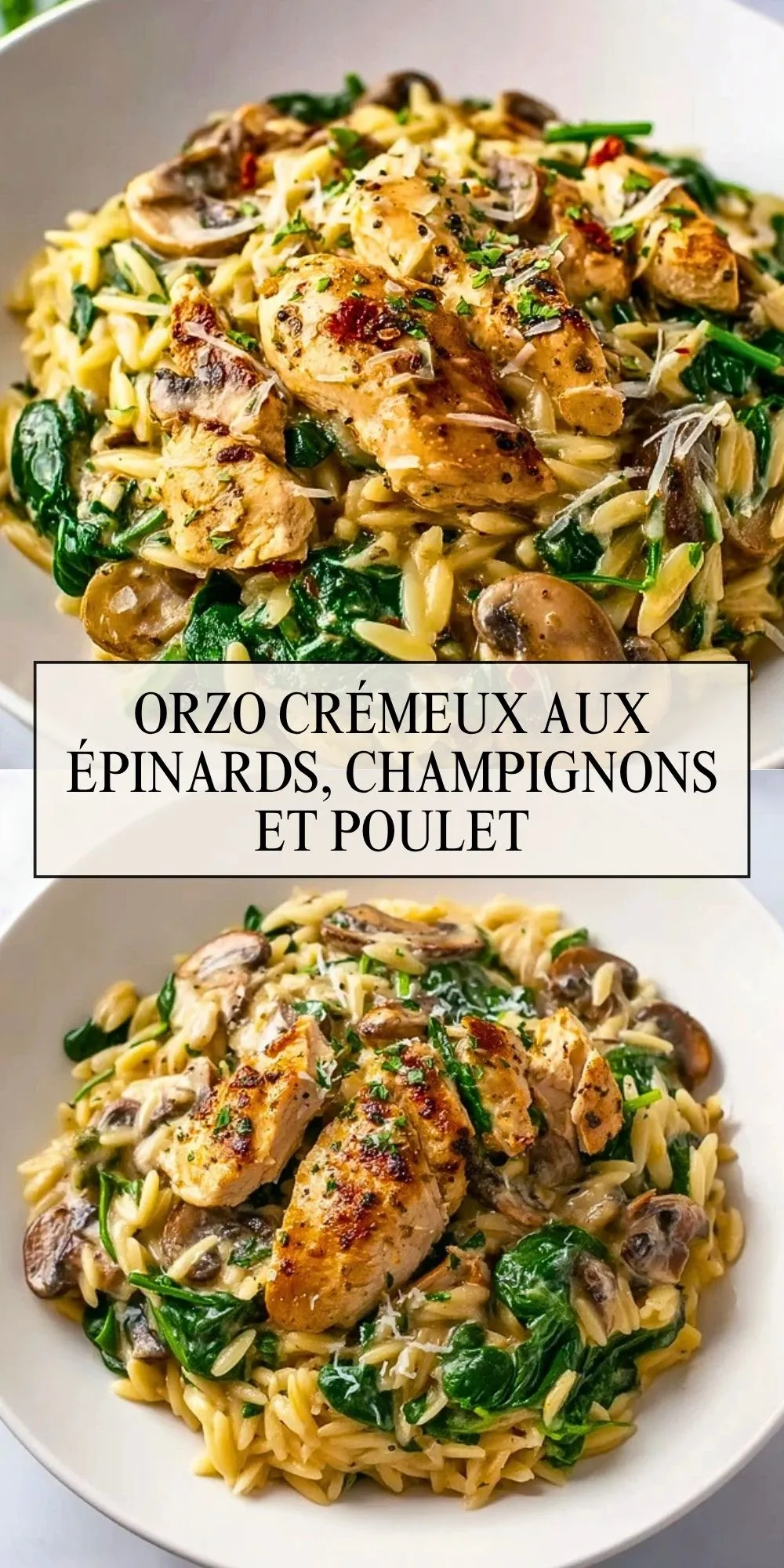 Keywords: orzo crémeux, poulet, épinards, champignons, repas facile, plat complet