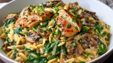 • Orzo Crémeux aux Épinards, Champignons et Poulet