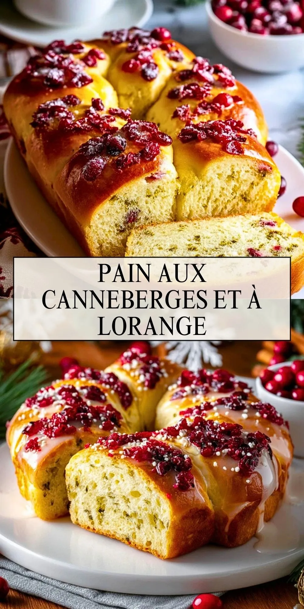 Un pain moelleux et festif, garni de canneberges acidulées et parfumé au zeste d’orange. Sa mie légère et dorée en fait la star du petit-déjeuner d’hiver ou d’un brunch gourmand. Parfait pour les fêtes ou à partager autour d’une boisson chaude.