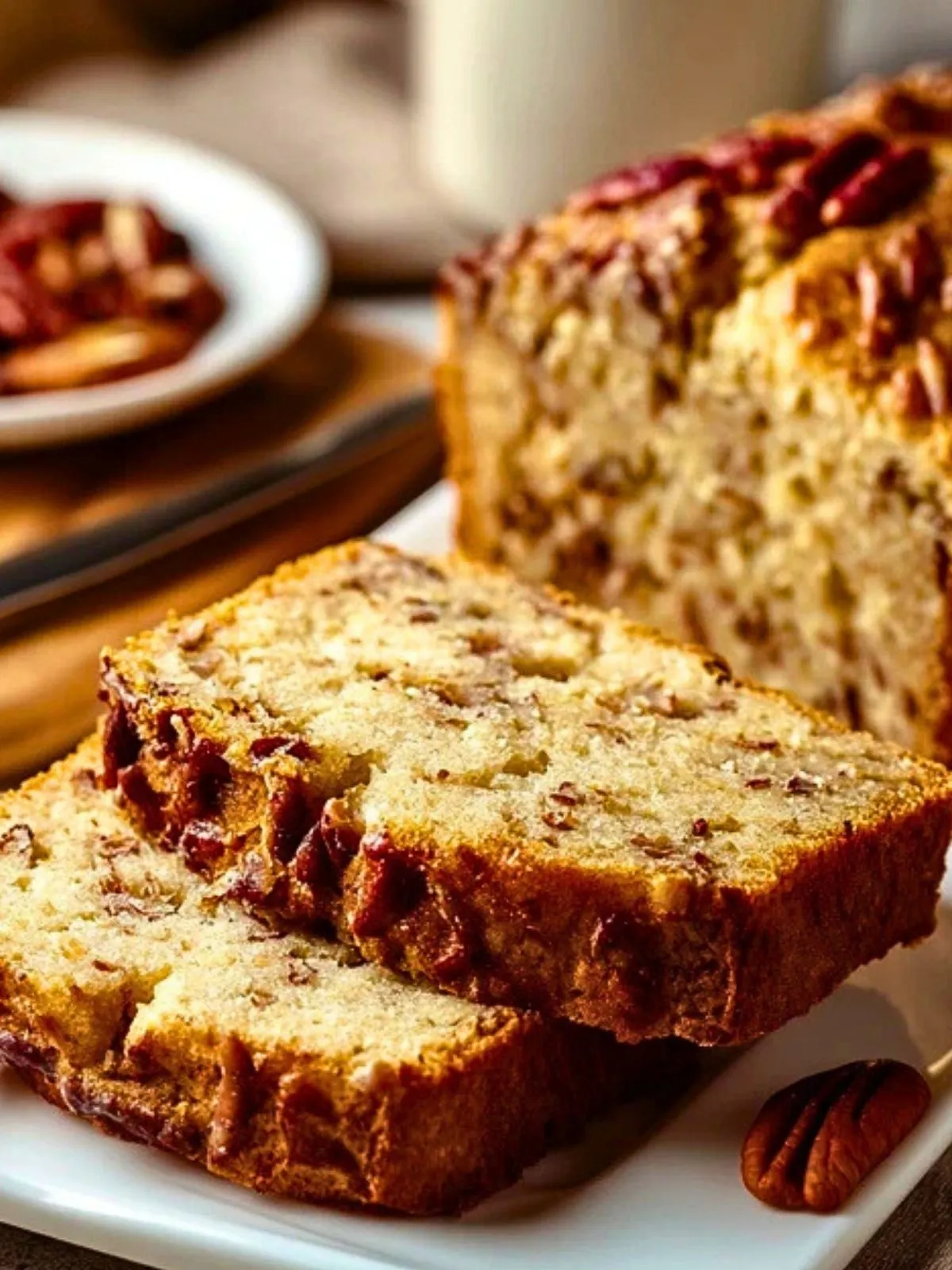 Ce pain doit son charme à l’équilibre entre la gourmandise et la simplicité : la mie reste humide plusieurs jours grâce au beurre et au lait, les noix de pécan apportent un croquant délicat et une saveur chaude de noisette, tandis que la fine couche caramélisée sur le dessus crée un contraste de textures à chaque bouchée. C’est une recette idéale pour utiliser des noix de pécan de qualité et offrir un goûter qui semble tout droit sorti d’une boulangerie chaleureuse.