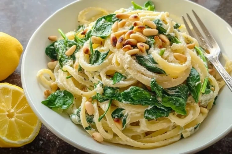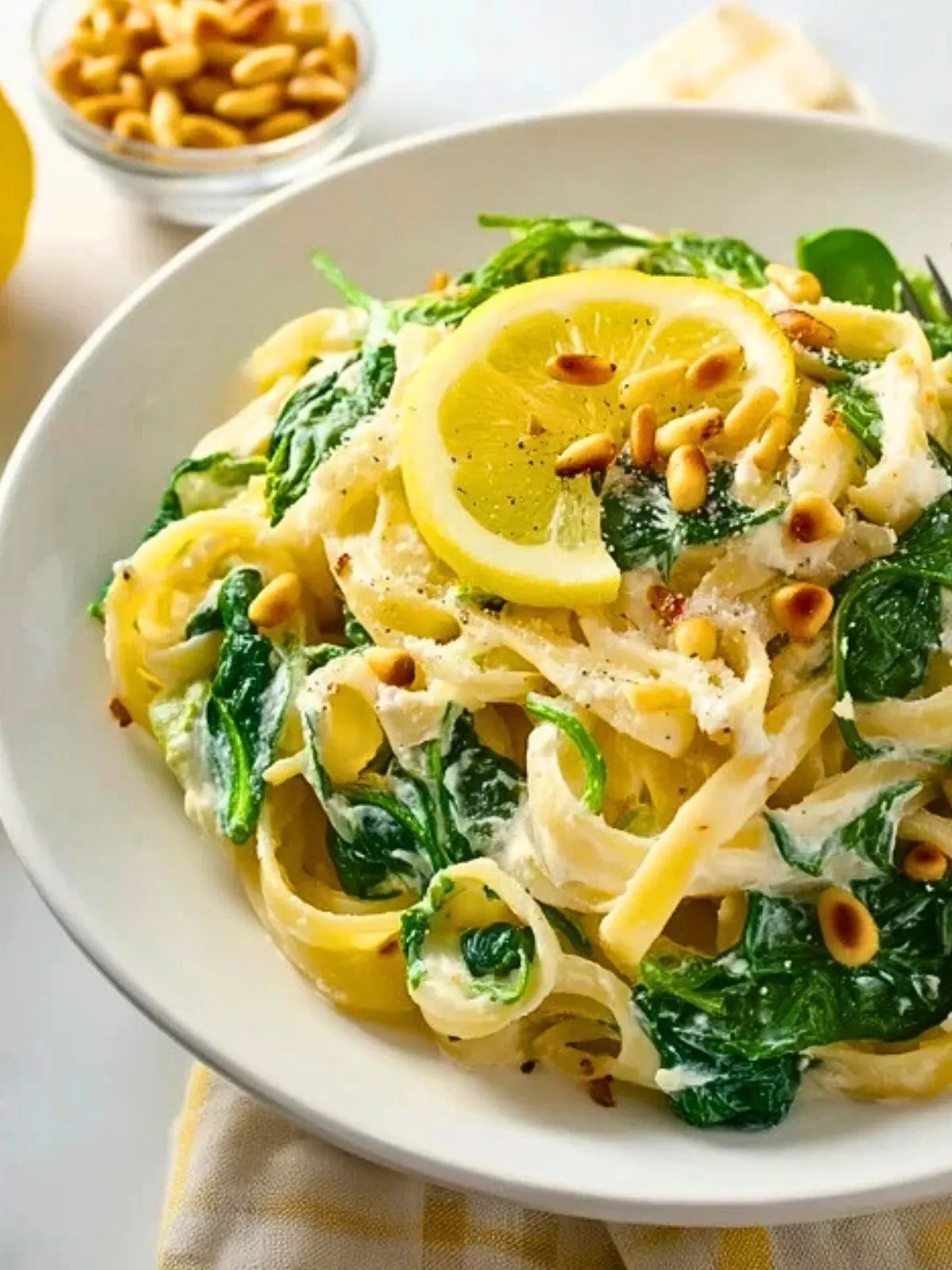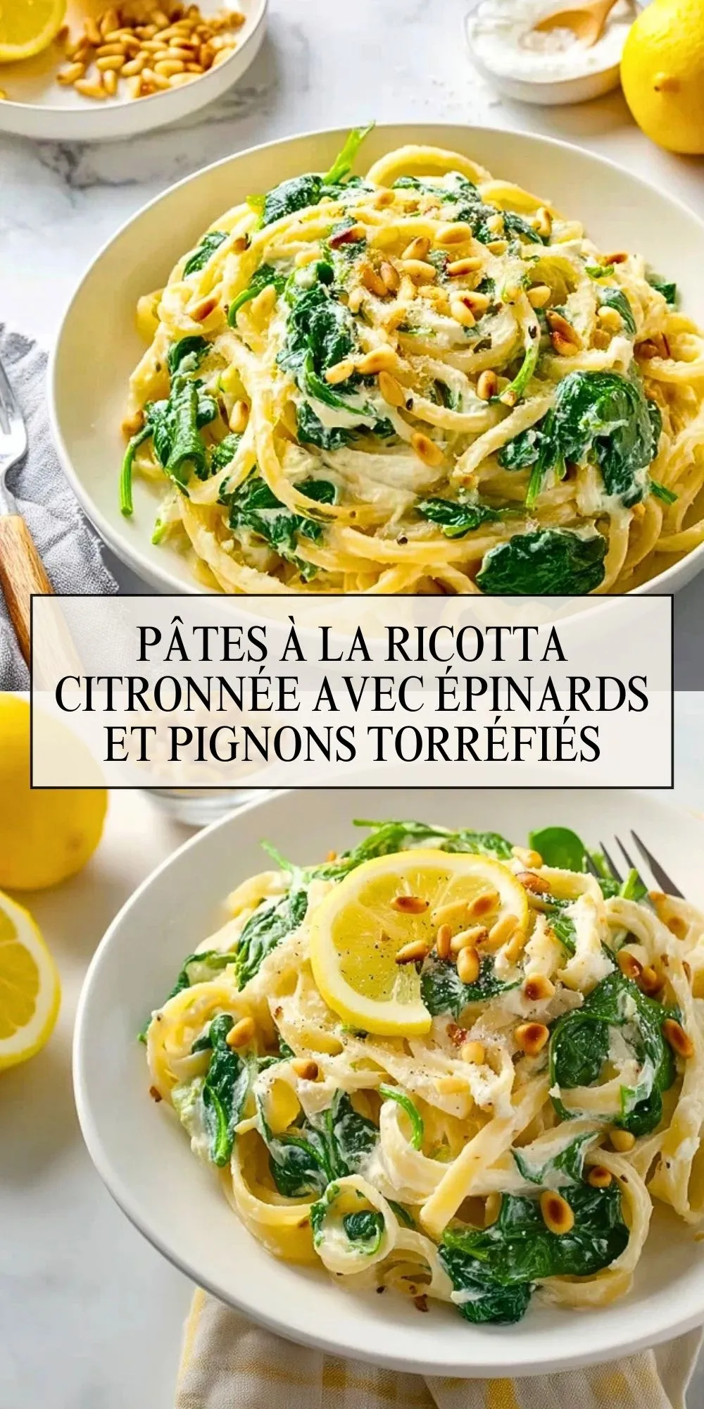 Pâtes à la Ricotta Citronnée avec Épinards et Pignons Torréfiés