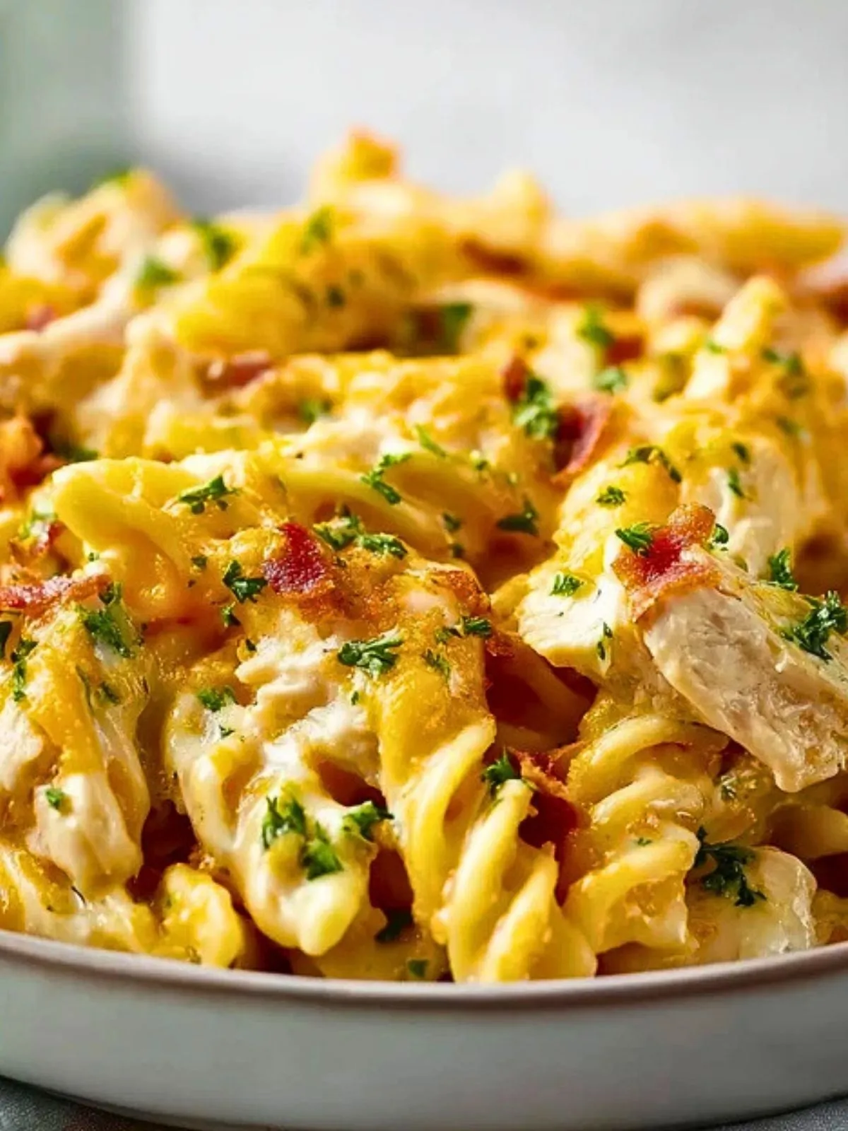 Un plat familial où des pâtes fondantes s’enrobent d’une sauce crémeuse au fromage, de morceaux de poulet dorés et de bacon croustillant, relevé d’herbes fraîches. Facile à préparer, convivial et ultra-gourmand, ce gratin de pâtes au poulet est un incontournable pour régaler petits et grands.