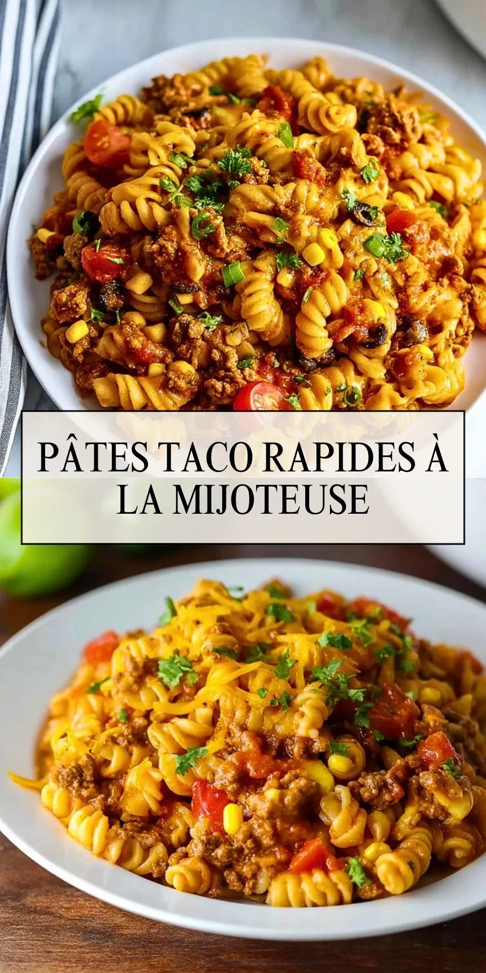 Keywords: pâtes taco, mijoteuse, one pot, recette familiale, bœuf haché