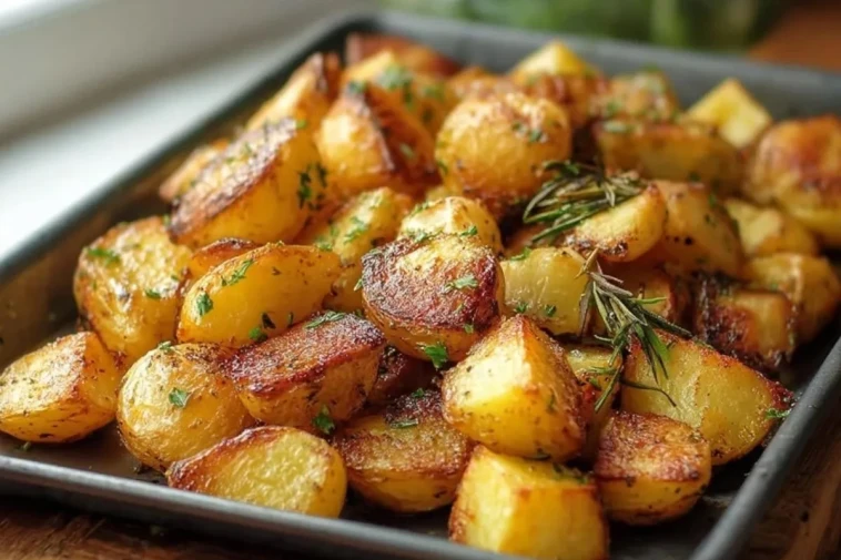 Ces pommes de terre rôties beurrées maison sont dorées à l’extérieur, fondantes à l’intérieur et délicatement parfumées à l’ail, au romarin et au persil. Faciles à préparer, elles constituent un accompagnement généreux et savoureux, parfait pour accompagner une viande, une volaille, un poisson ou un repas familial simple et réconfortant.
