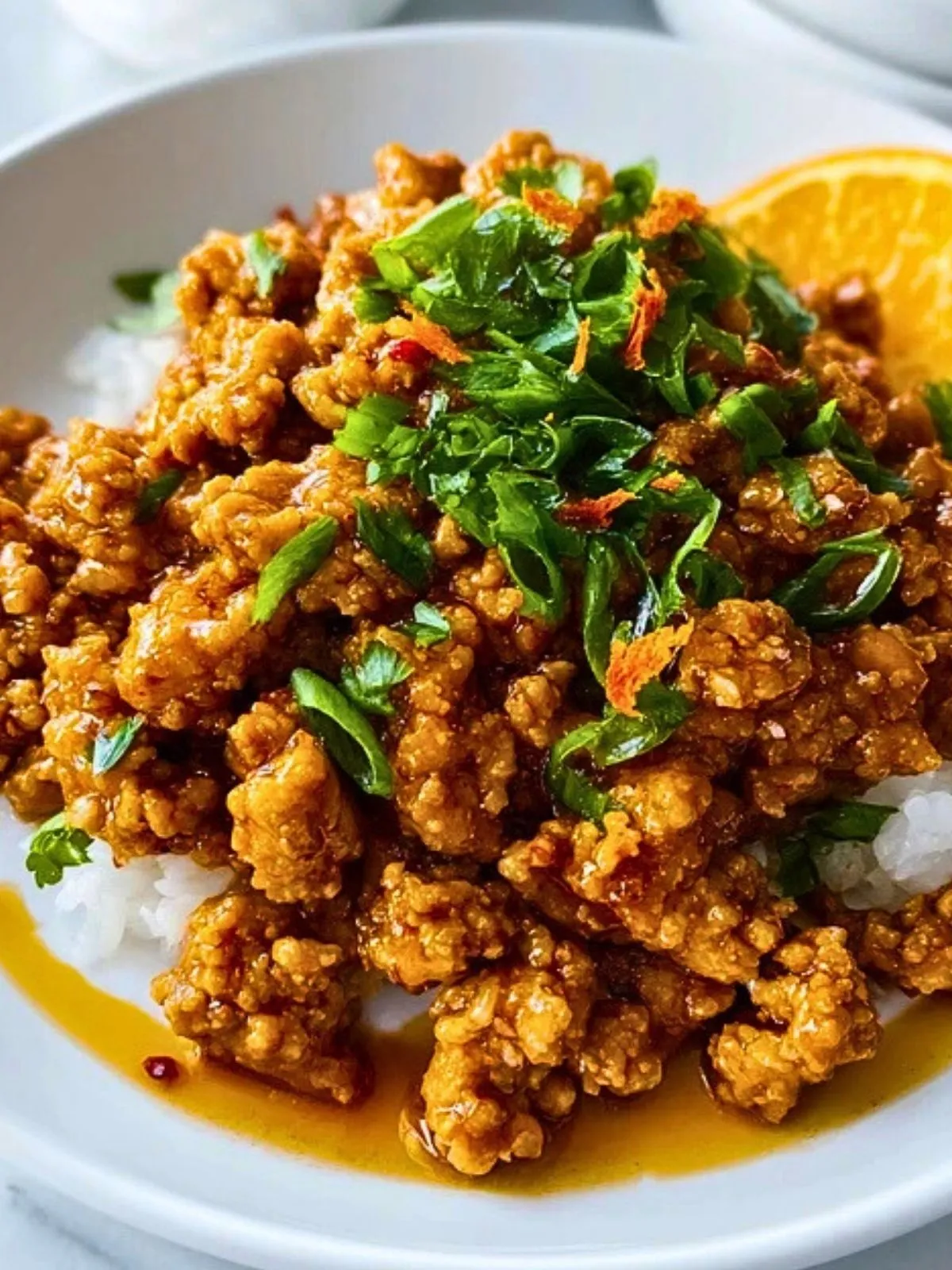 Le poulet à l’orange haché est un plat rapide, savoureux et parfaitement équilibré entre douceur, fraîcheur et notes salées. Servi sur du riz bien chaud, il offre une sauce brillante parfumée à l’orange, relevée par l’ail, le gingembre et une légère touche de piment pour un repas simple mais plein de caractère.