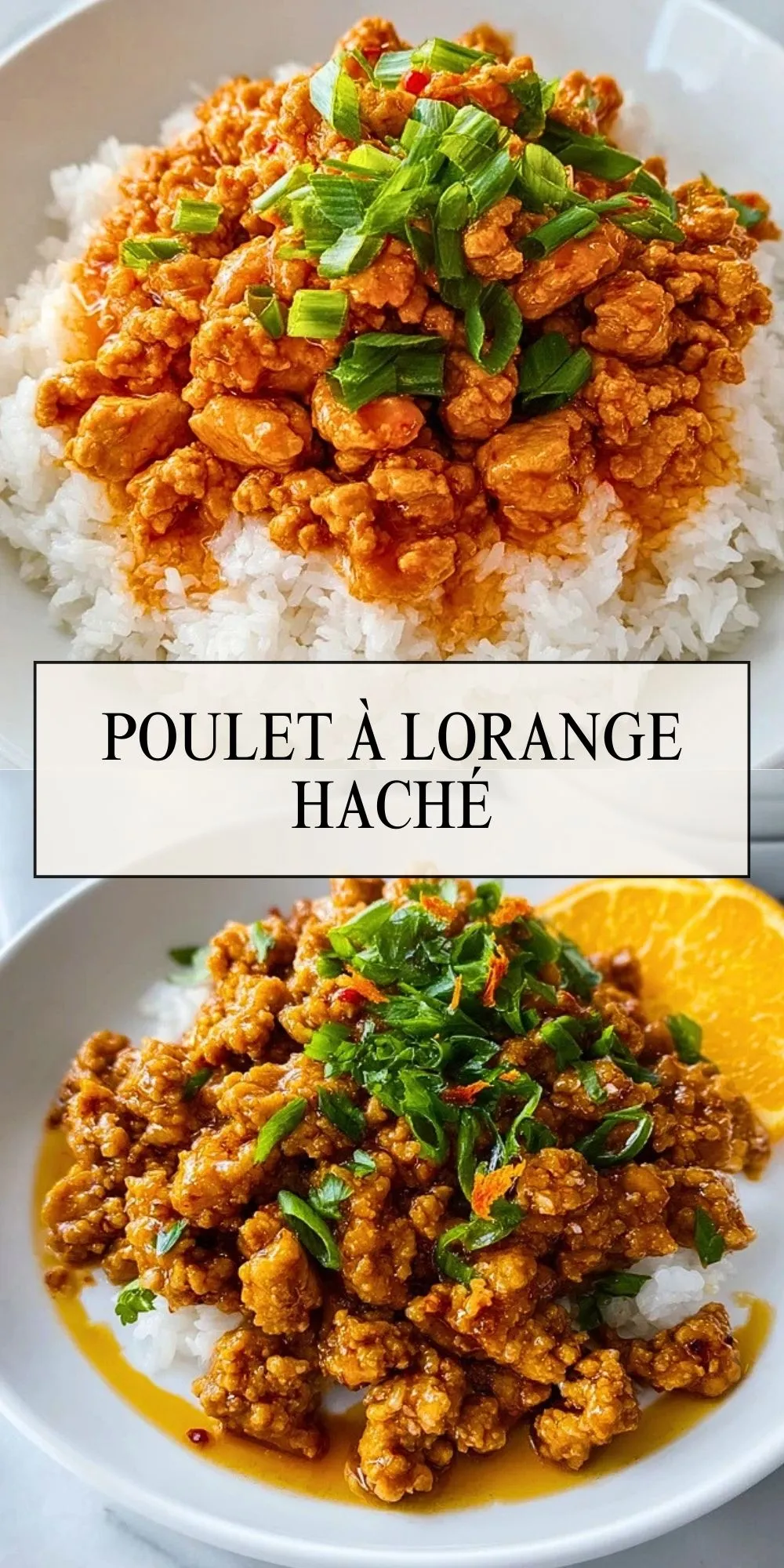 Keywords: poulet à l’orange haché, poulet à l’orange, poulet haché, plat rapide, riz