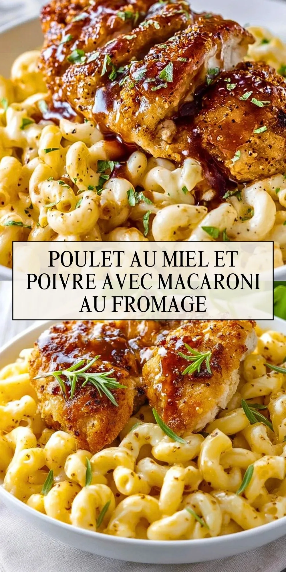 Ce mariage est une réussite car il combine le croustillant et la douceur légèrement épicée du poulet avec la texture fondante et réconfortante du macaroni au fromage. Les saveurs se complètent : le miel adoucit le piquant du poivre, tandis que le fromage apporte une profondeur crémeuse. Le résultat ? Un plat équilibré, gourmand et surprenant qui sort de l’ordinaire.