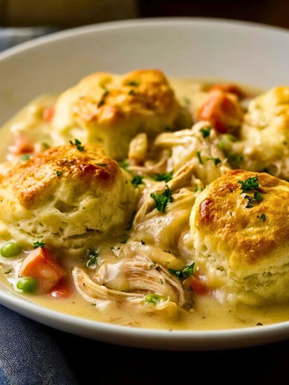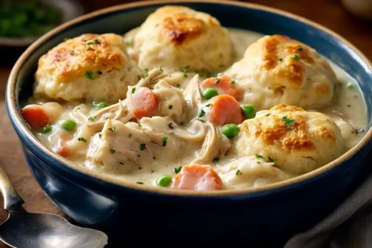 Le poulet aux galettes faciles est le genre de plat qui met tout le monde d’accord autour de la table. Entre la sauce crémeuse, les morceaux de poulet tendres, les légumes fondants et les galettes dorées déposées sur le dessus, chaque bouchée rappelle les grands classiques des repas familiaux généreux et réconfortants.