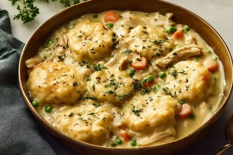 Le poulet irrésistible aux galettes et boulettes est l’un de ces plats profondément réconfortants qui transforment un simple dîner en vrai moment de douceur. Entre le poulet tendre, la sauce onctueuse aux légumes et les galettes moelleuses qui cuisent doucement à la surface, on obtient un plat généreux, familial et particulièrement satisfaisant.
