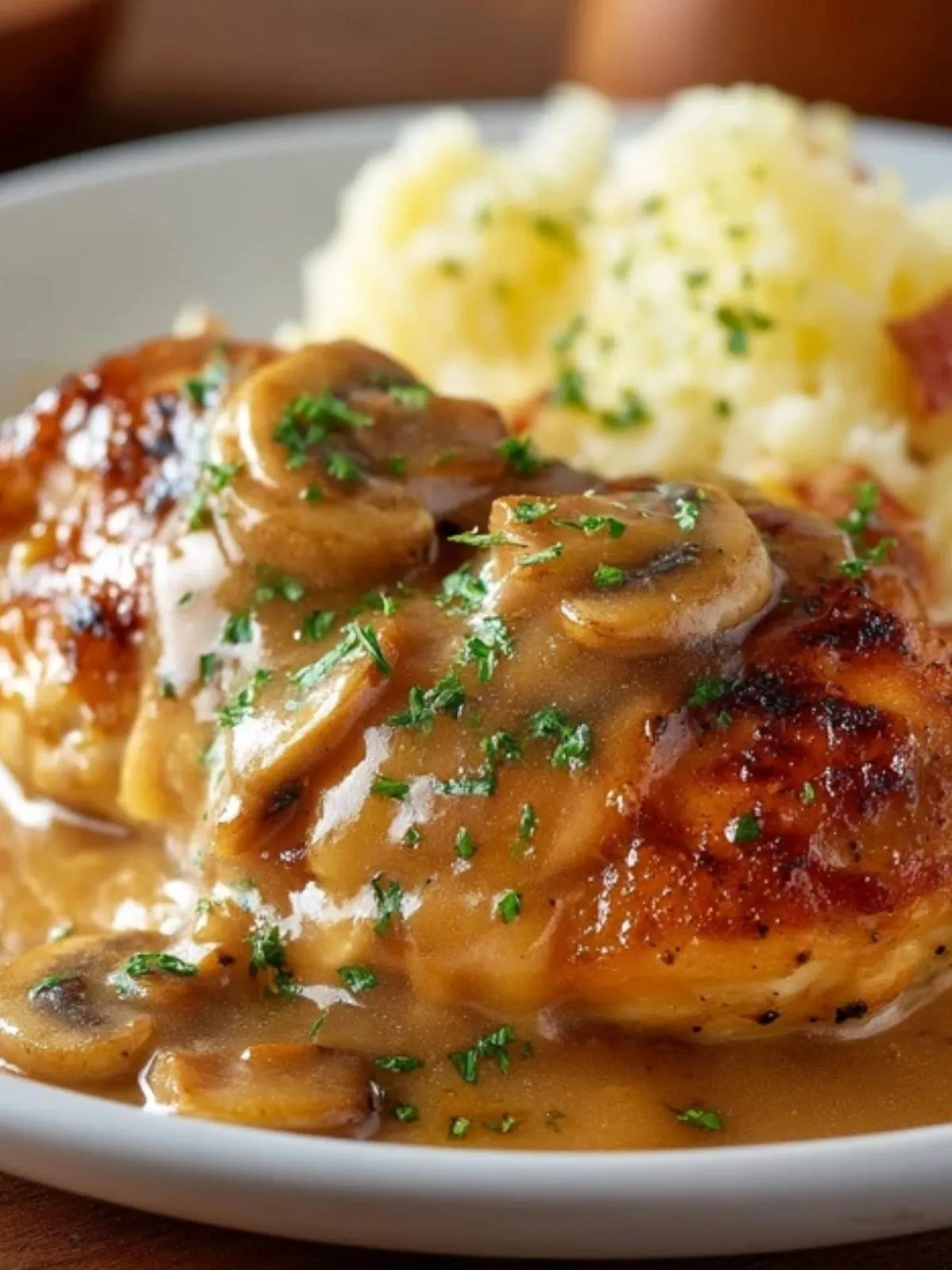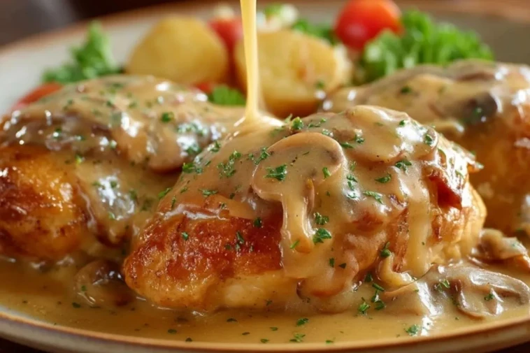 Doré à l’extérieur et tendre à l’intérieur, ce poulet sauté avec sauce crémeuse est un plat réconfortant qui séduit dès la première bouchée. La viande juteuse s’enrobe d’une sauce onctueuse aux champignons, relevée d’ail et d’herbes fraîches.
